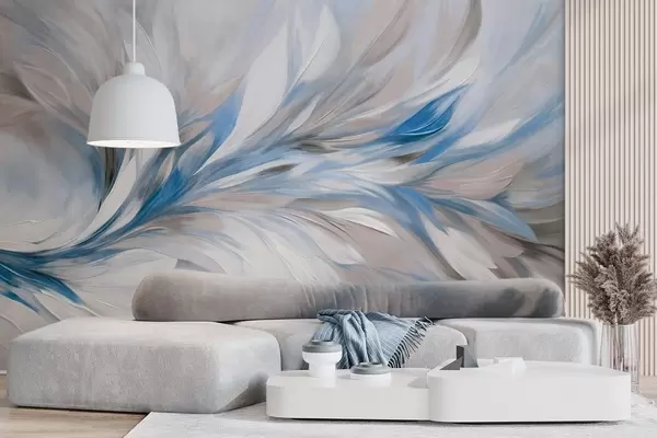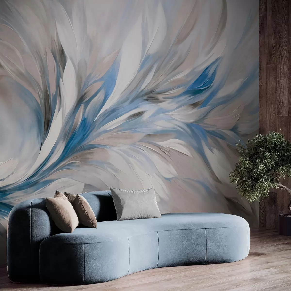 Fototapetak Absztrakt festészeti stílus fehér, kék és szürke texturált ecsetvonásokkal, puha, világos háttérrel Nr. w09552v1