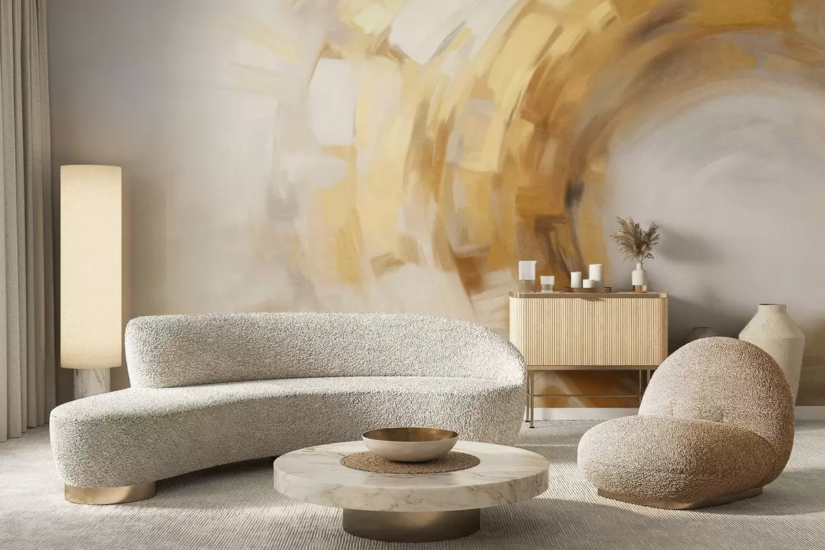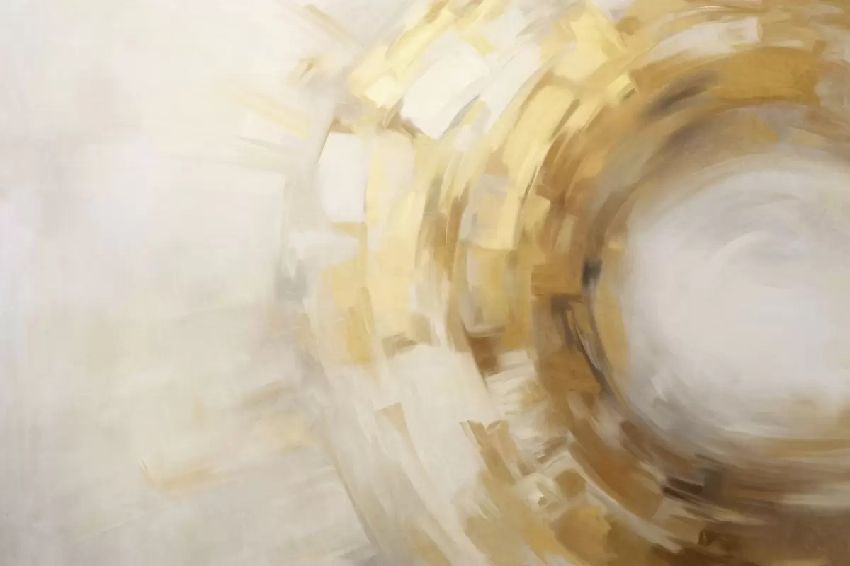 Fototapetak Absztrakt festmény utánzat, sárga és fehér színű, kör alakú textúrájú ecsetvonásokkal, mozgásérzetet keltve. Nr. w09558