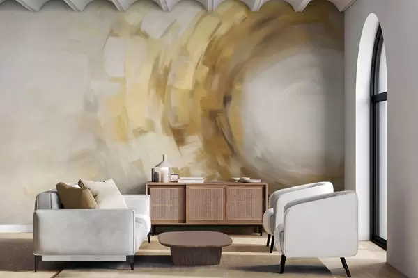 Fototapetak Absztrakt festmény utánzat, sárga és fehér színű, kör alakú textúrájú ecsetvonásokkal, mozgásérzetet keltve Nr. w09558
