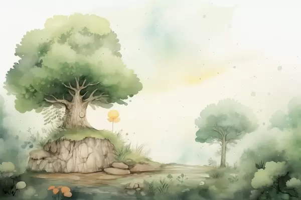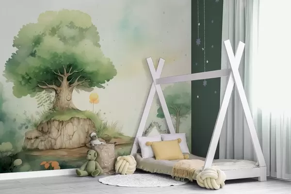 Fototapetak A gyermekkori mesevilág egy zöld erdőben, akvarell stílusban Nr. w09566
