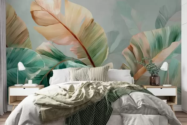 Fototapetak Finom trópusi banánlevelek pasztell sárgászöld árnyalatokban Nr. w09581