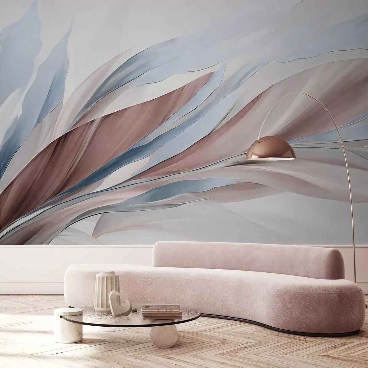 Fototapetak Absztrakt, kék és barna hullámok, vékony formák és vonalak, fehér háttér előtt, texturált művészet Nr. w09585v1