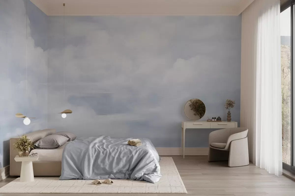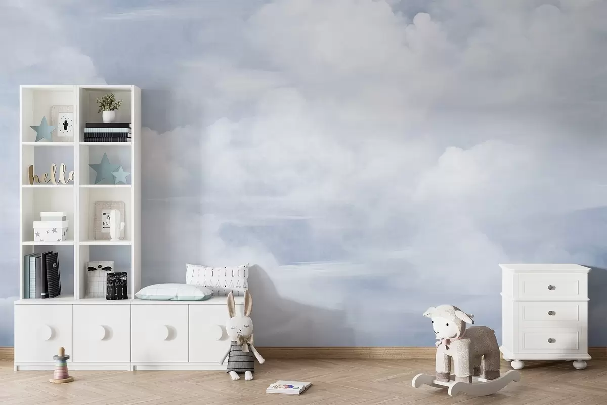 Fototapetak Pasztell textúrájú égbolt, fehér felhőkkel, lágy és minimalista esztétikával Nr. w09589