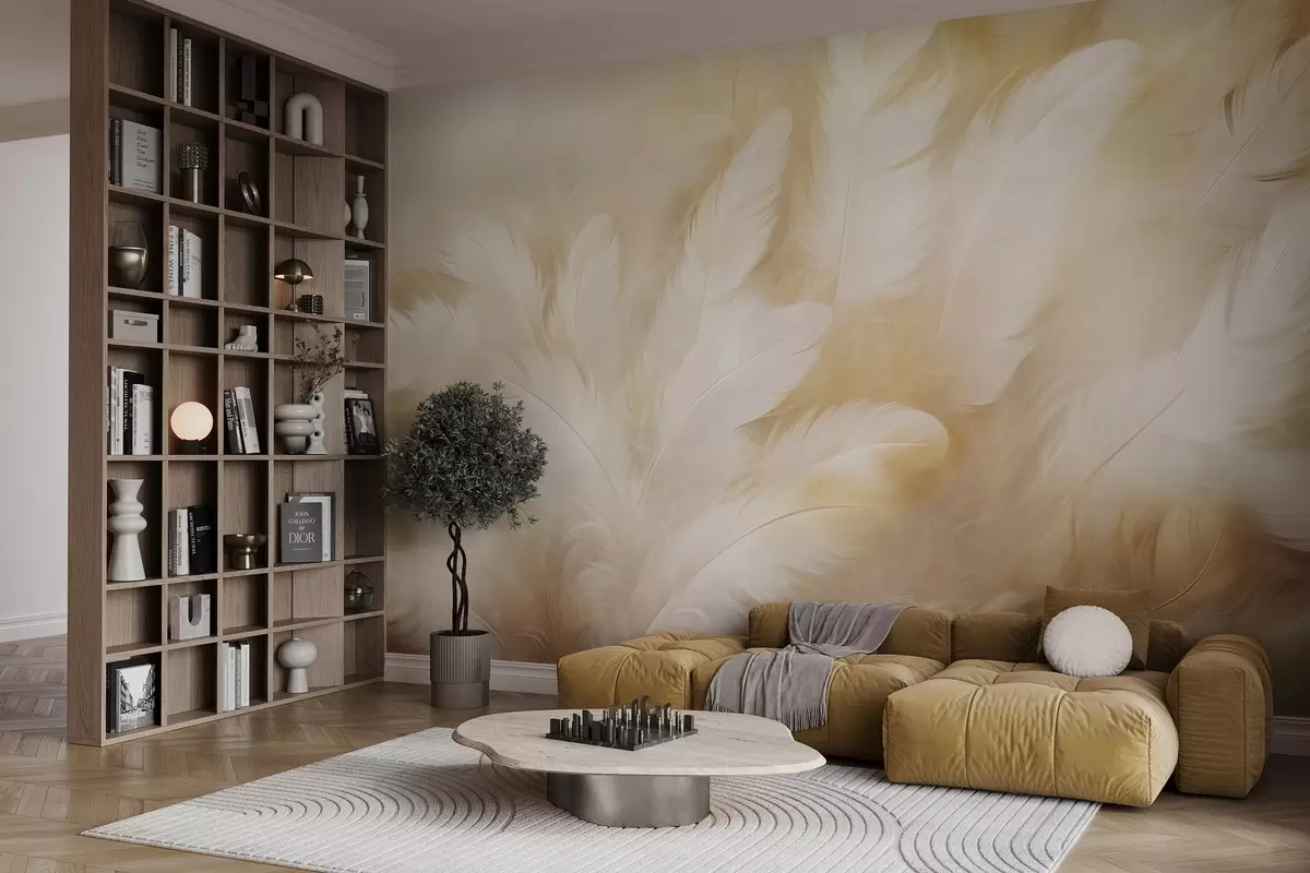Fototapetak Fehér és sárga tollak, puha textúrával Nr. w09606