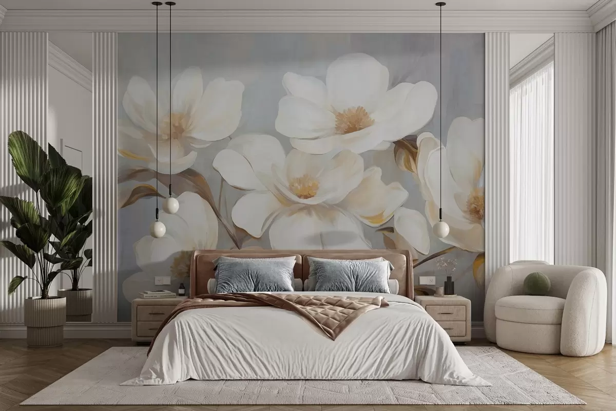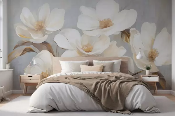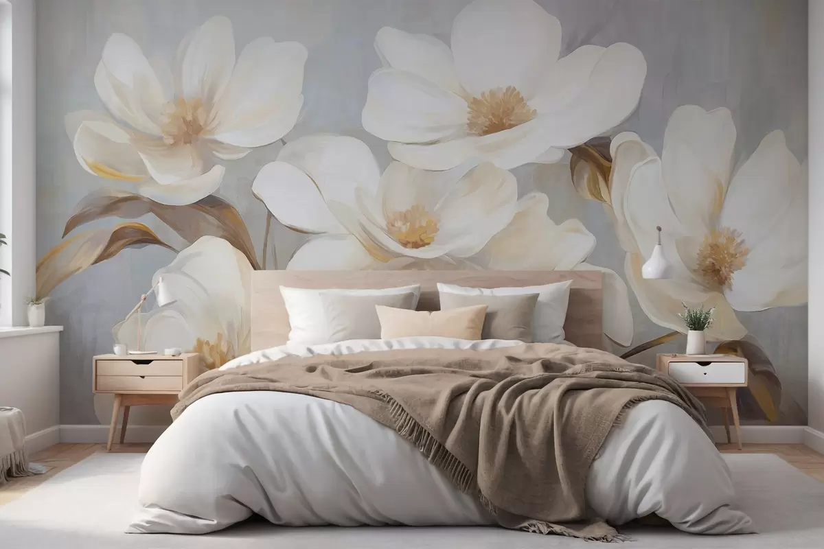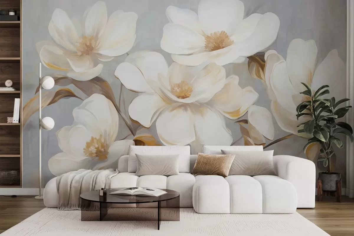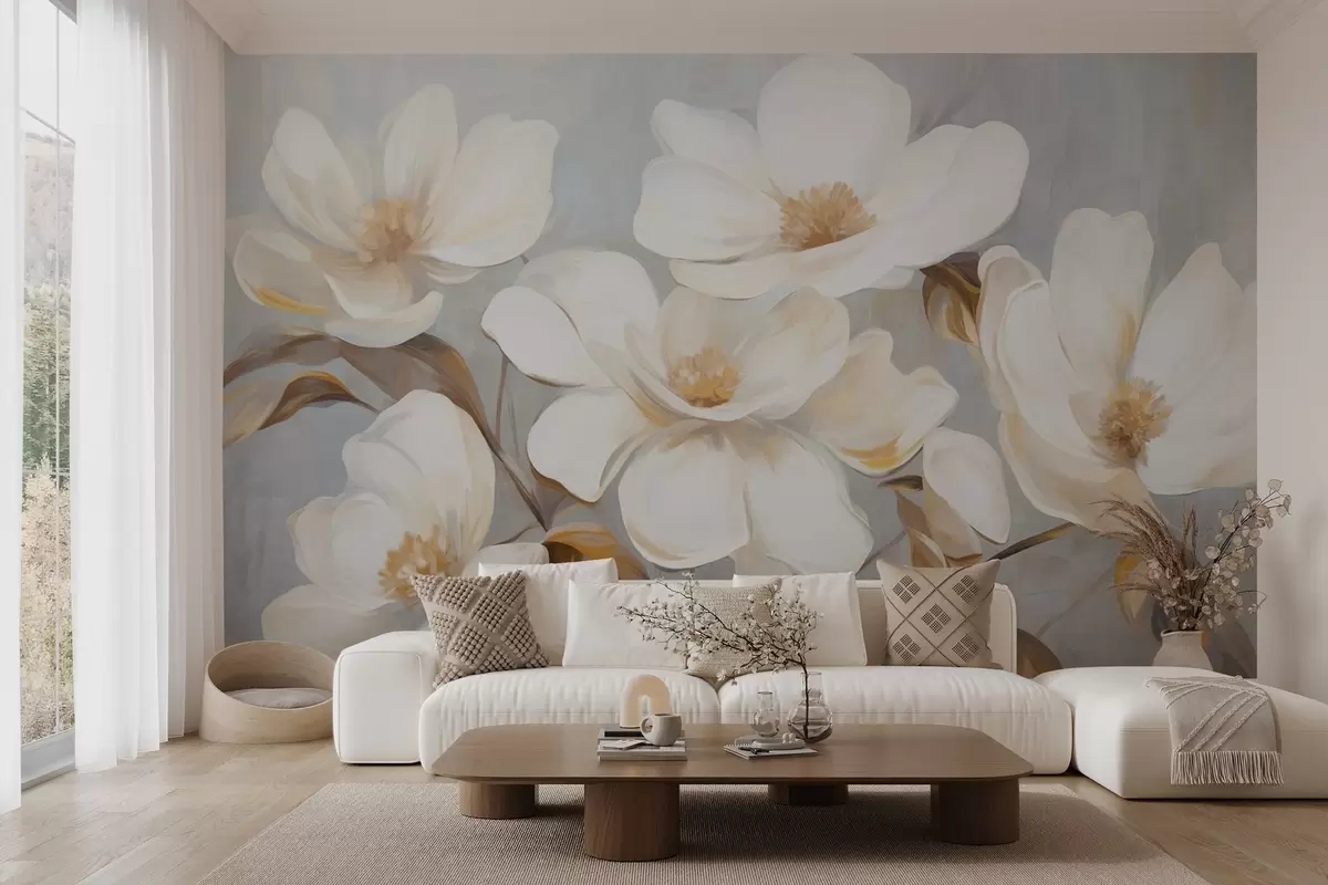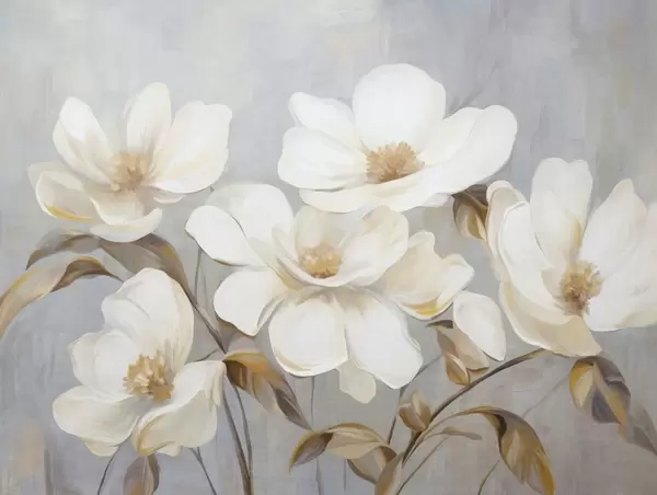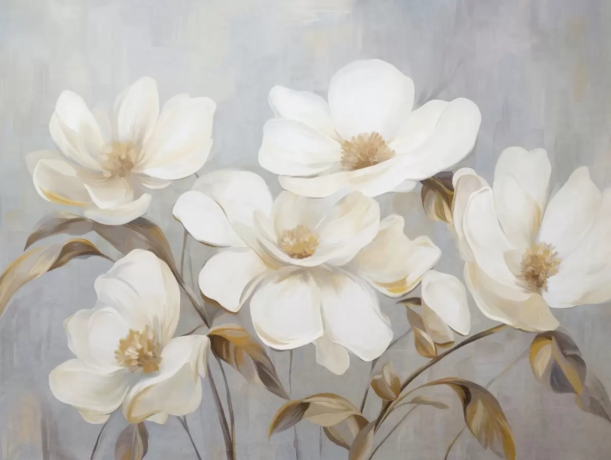 Fototapetak Több fehér magnólia virág texturált festményimitációja halvány pasztell háttér előtt Nr. w09612