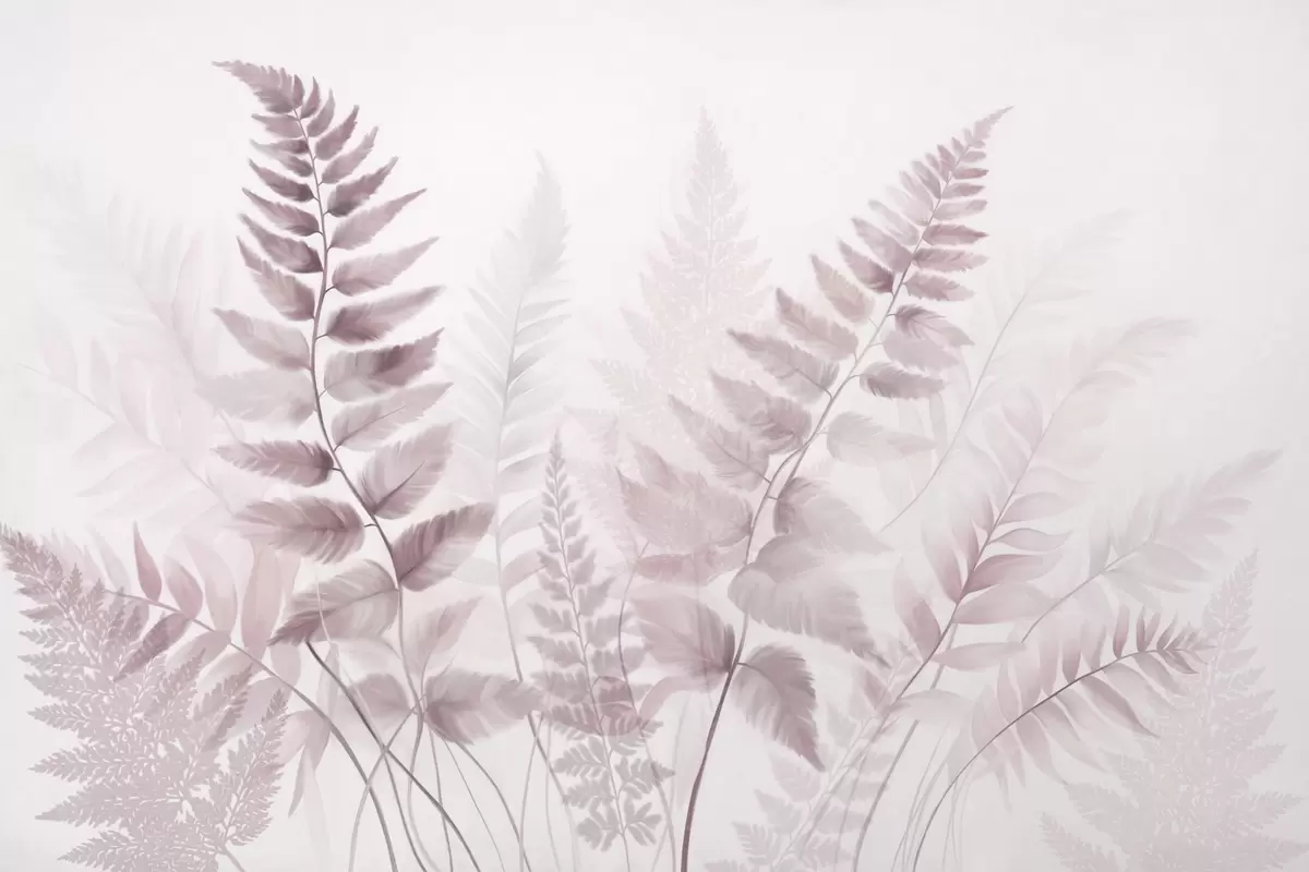 Fototapetak Texturált, szárított páfránylevelek különböző rózsaszín árnyalatokban, puha, világos háttérrel, akvarell stílusban. Nr. w09615v2