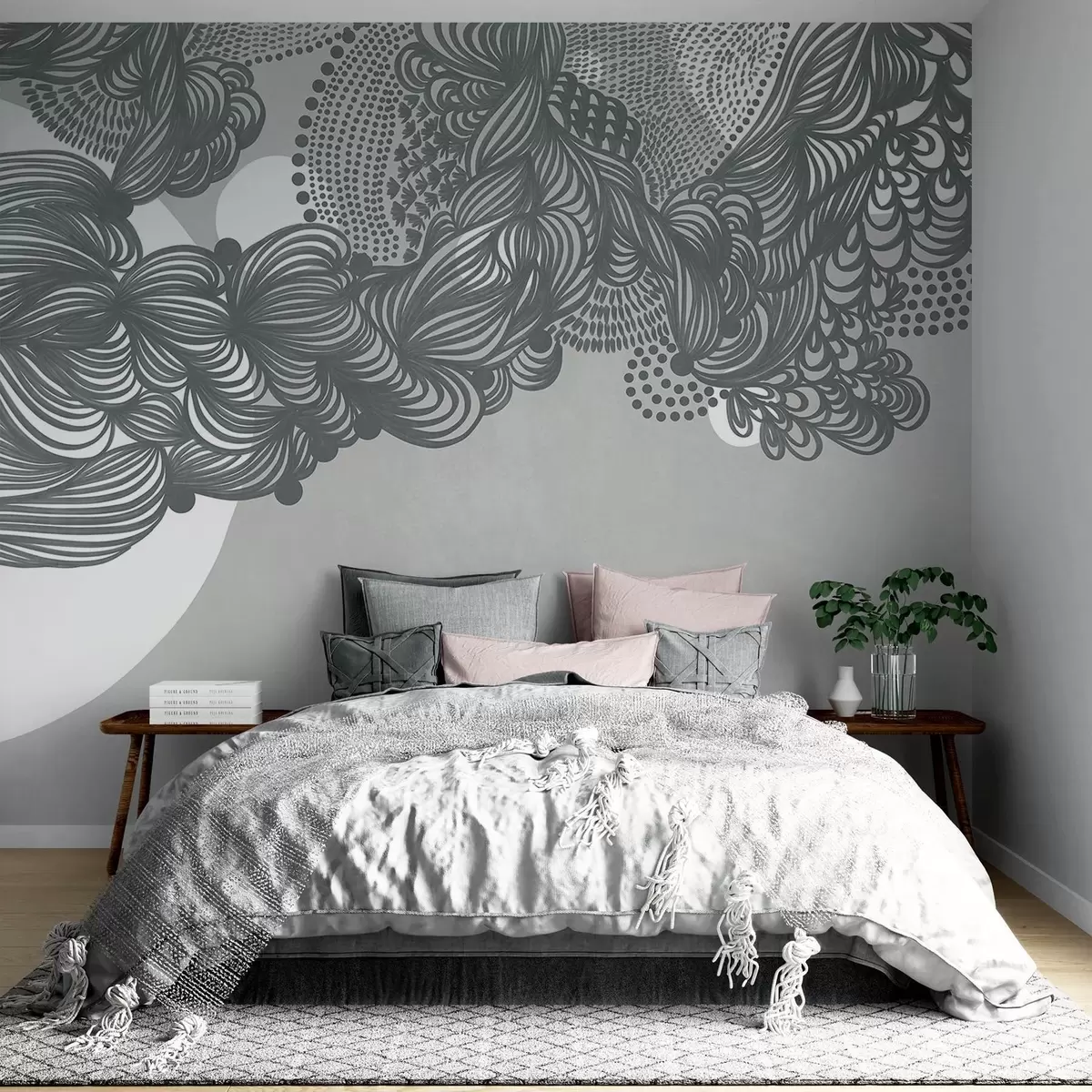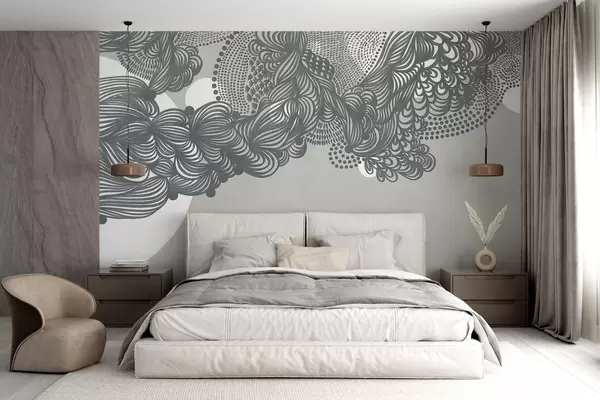 Fototapetak Absztrakt textúrájú mintázat szürke háttérrel, bonyolult vonalakkal és pontozott textúrákkal Nr. w09621v1