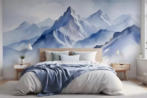 Fototapetak Texturált havas hegyek lágy, akvarellhatású, kék és fehér színpalettával Nr. w09630