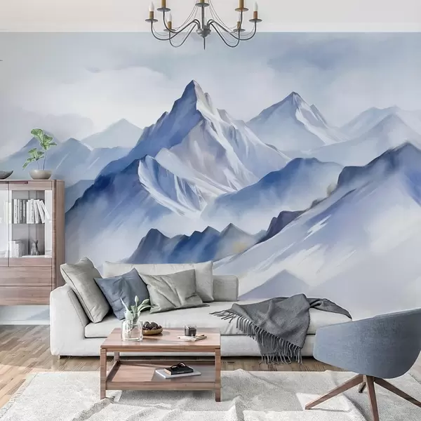Fototapetak Texturált havas hegyek lágy, akvarellhatású, kék és fehér színpalettával Nr. w09630