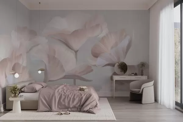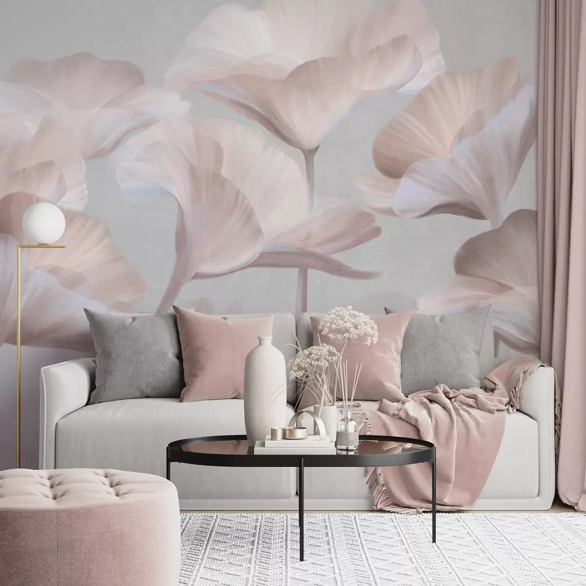 Fototapetak Halvány barack színű, áttetsző lótuszvirágok finom szirmokkal, tompa szürke háttér előtt Nr. w09640