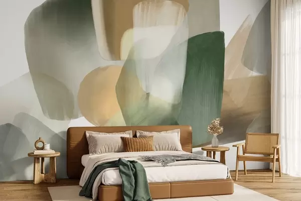 Fototapetak Absztrakt textúrájú formák tompa zöld és bézs színekben, lágy élekkel és egymást átfedő rétegekkel Nr. w09642