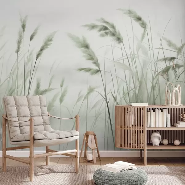 Fototapetak Magas, texturált száraz fű búzakalászokkal a mezőn, lágy, halvány háttér előtt Nr. w09648v1