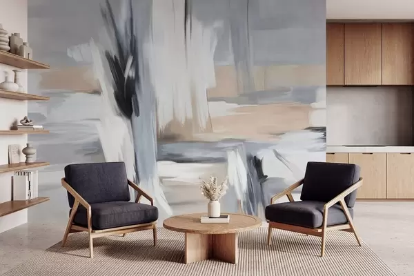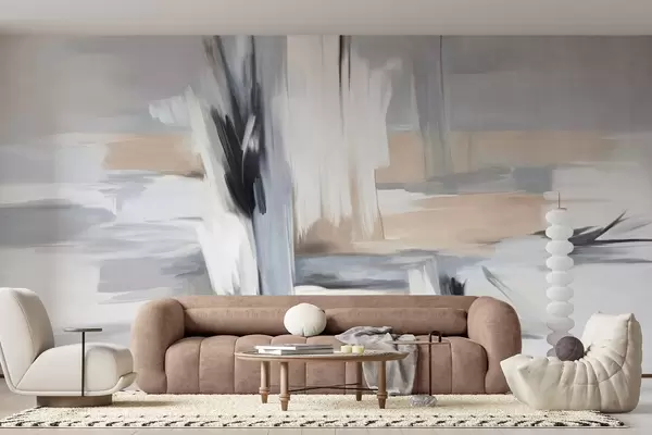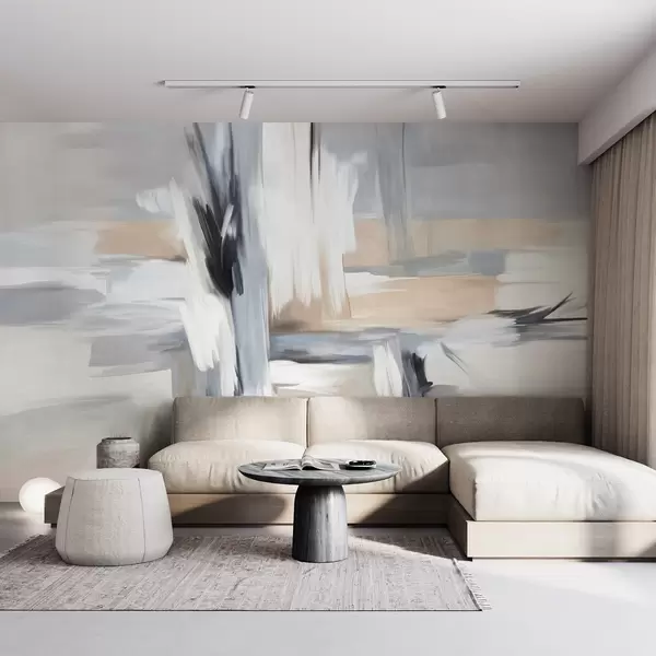 Fototapetak Absztrakt textúrájú festészeti stílus, fehér, szürke és bézs árnyalatú ecsetvonásokkal Nr. w09651