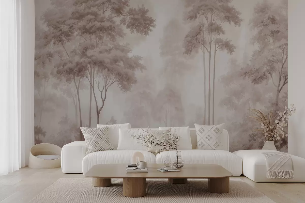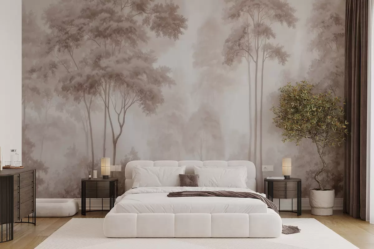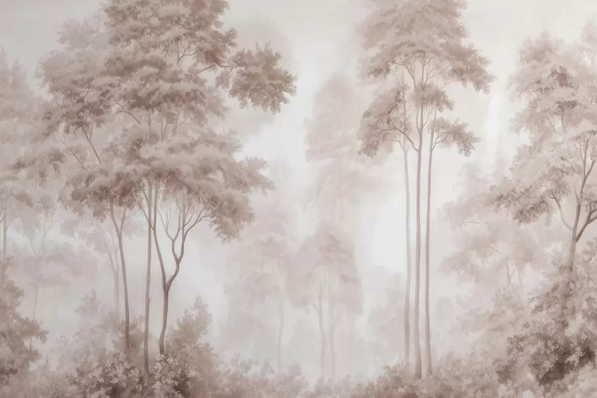 Fototapetak Absztrakt erdei tájkép füstös bézs árnyalatokban, mélységérzettel Nr. w09657