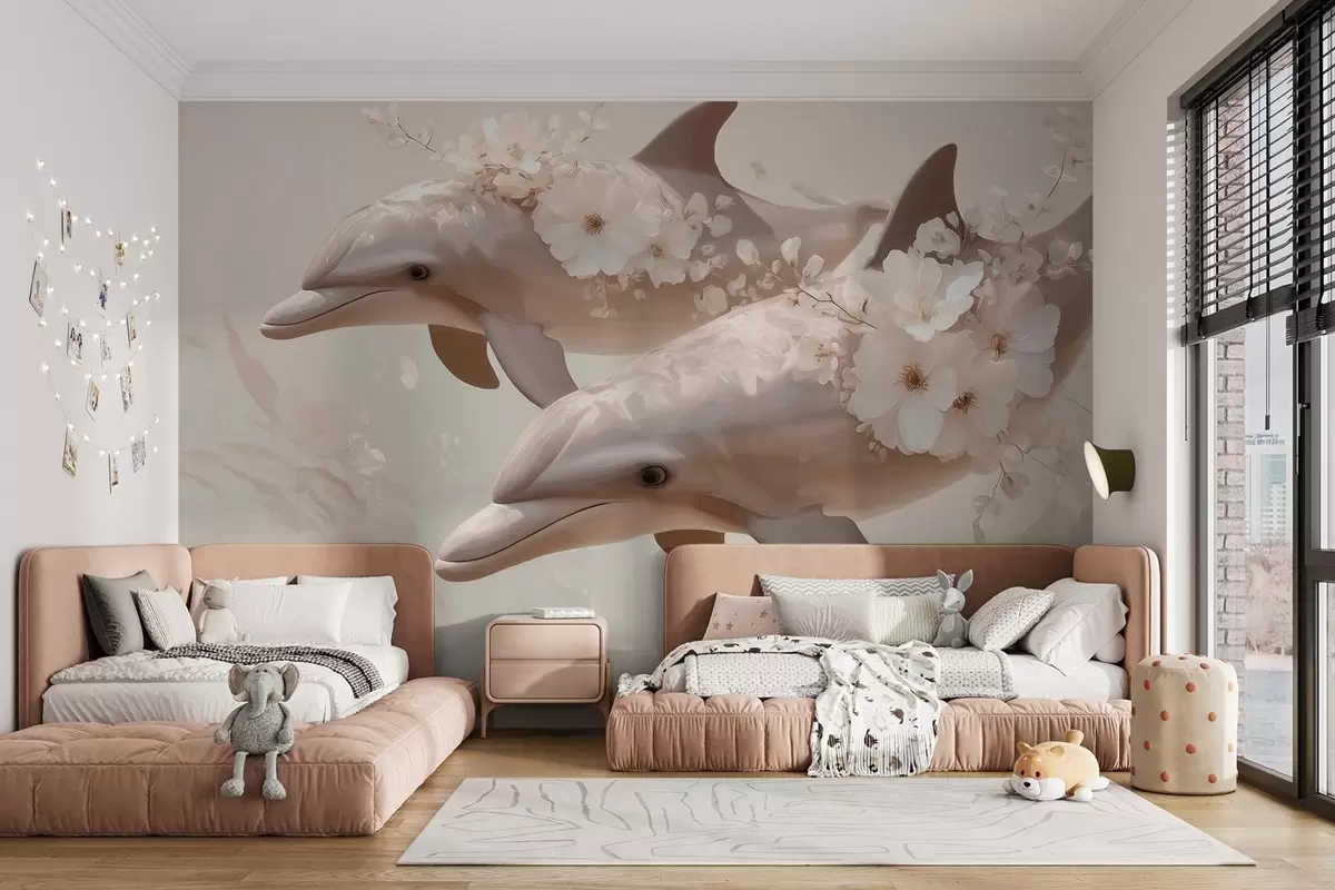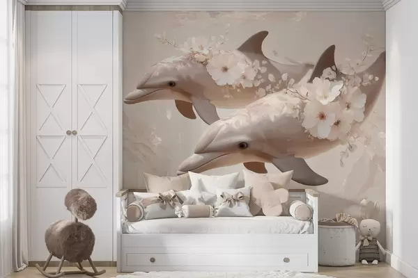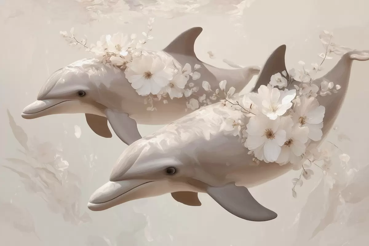 Fototapetak Delfinek a finom virágok és a lágy fény tengerében Nr. w09666