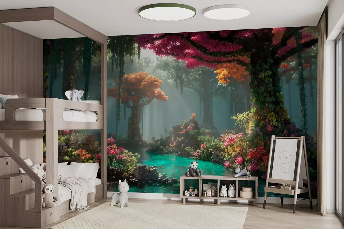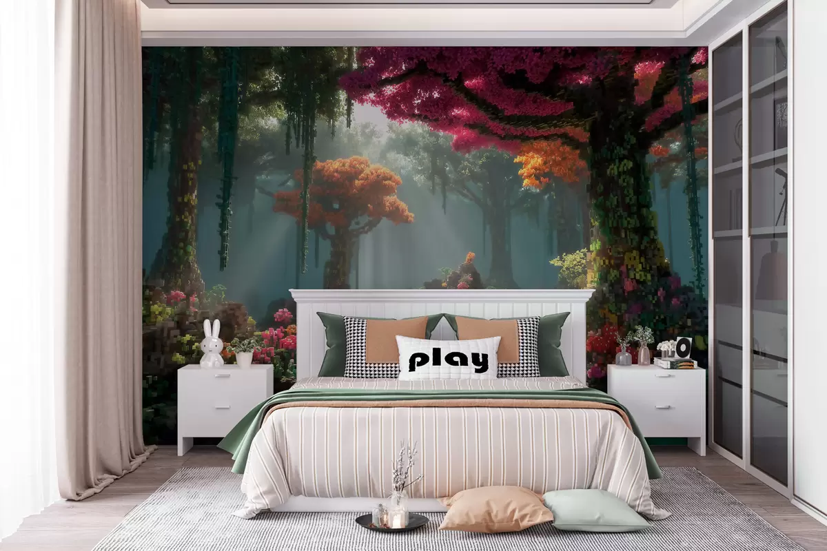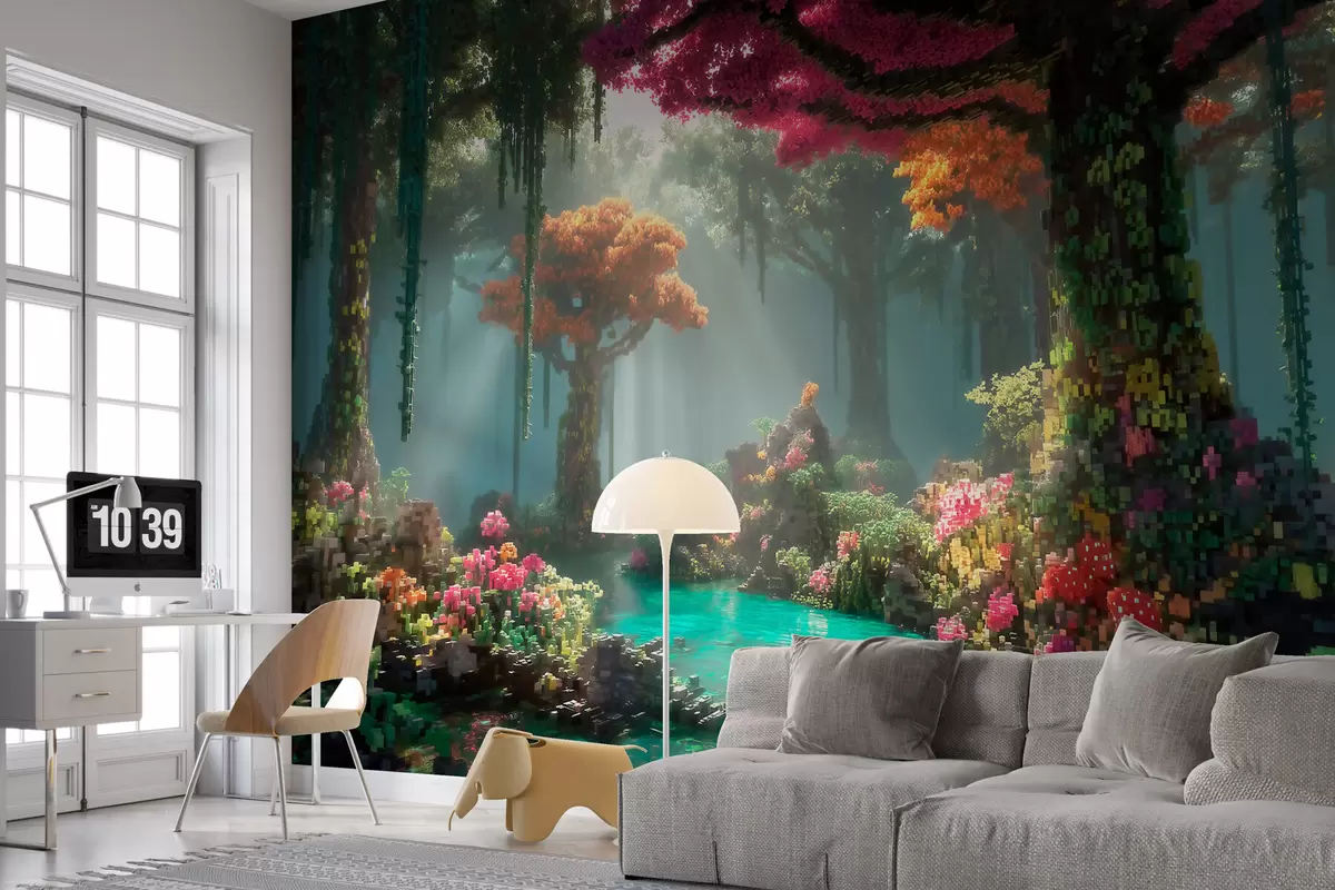 Fototapetak Videójátékok ihlette, pixel stílusú varázslatos erdei liget Nr. w09683