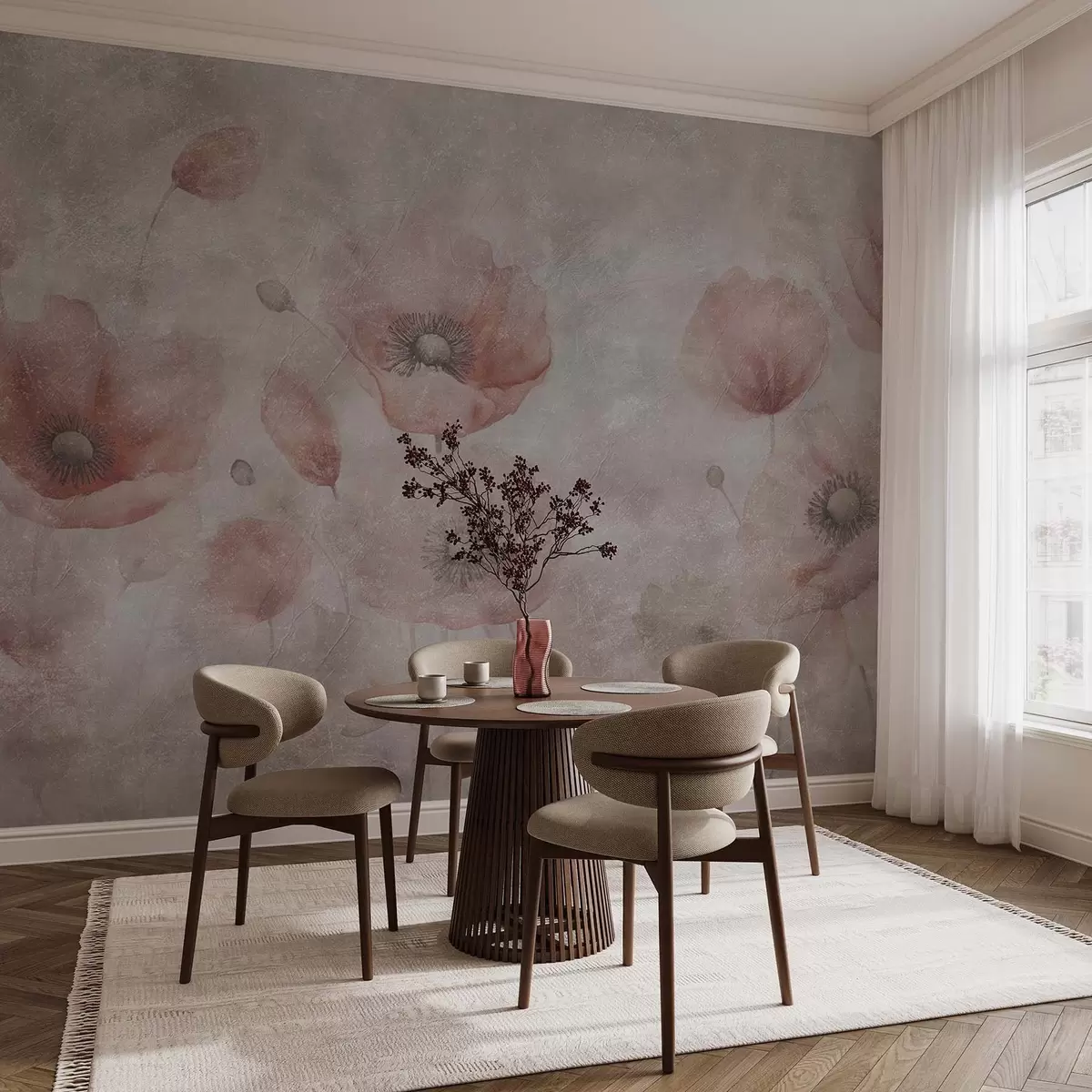 Fototapetak Nagy mákvirágok antik hatású falon Nr. w09686