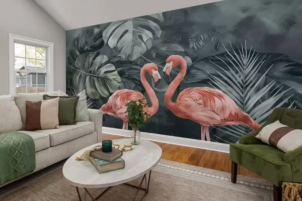 Fototapetak Egy pár flamingó trópusi növények között Nr. w09687