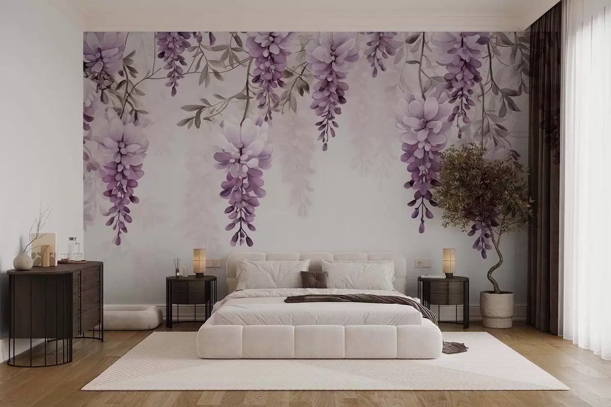 Fototapetak Finom, nagy levendula ágak lógnak a falon, imitált akvarell Nr. w09690