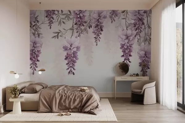 Fototapetak Finom, nagy levendula ágak lógnak a falon, imitált akvarell Nr. w09690