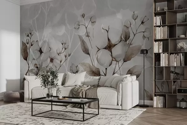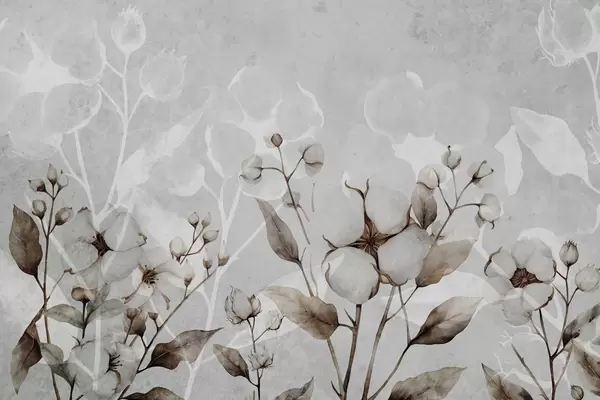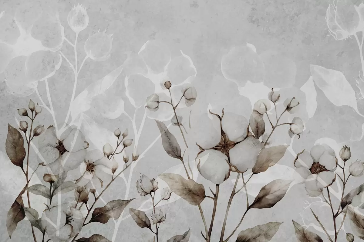 Fototapetak Nagy pamutvirágok világosszürke háttérrel Nr. w09691