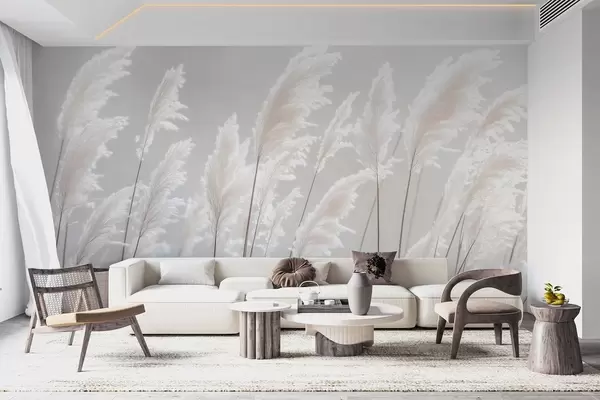 Fototapetak Puha fehér pampas fű a gyengéd reggeli fényben Nr. w09717