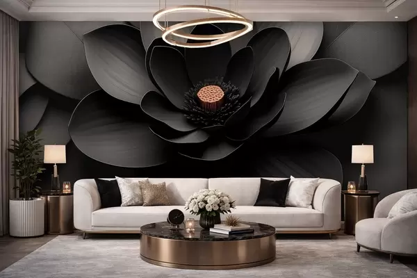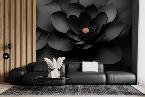 Fototapetak Minimalista fekete virág szirmokkal és kontrasztos, meleg színű közepével Nr. w09721