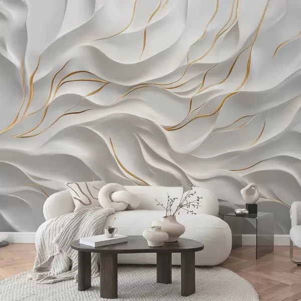 Fototapetak Szürke dombornyomott hullámok sárga díszítéssel Nr. w09724