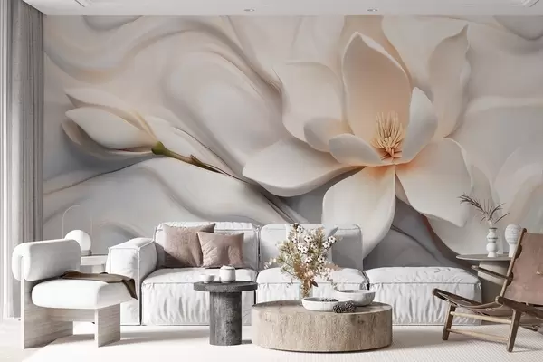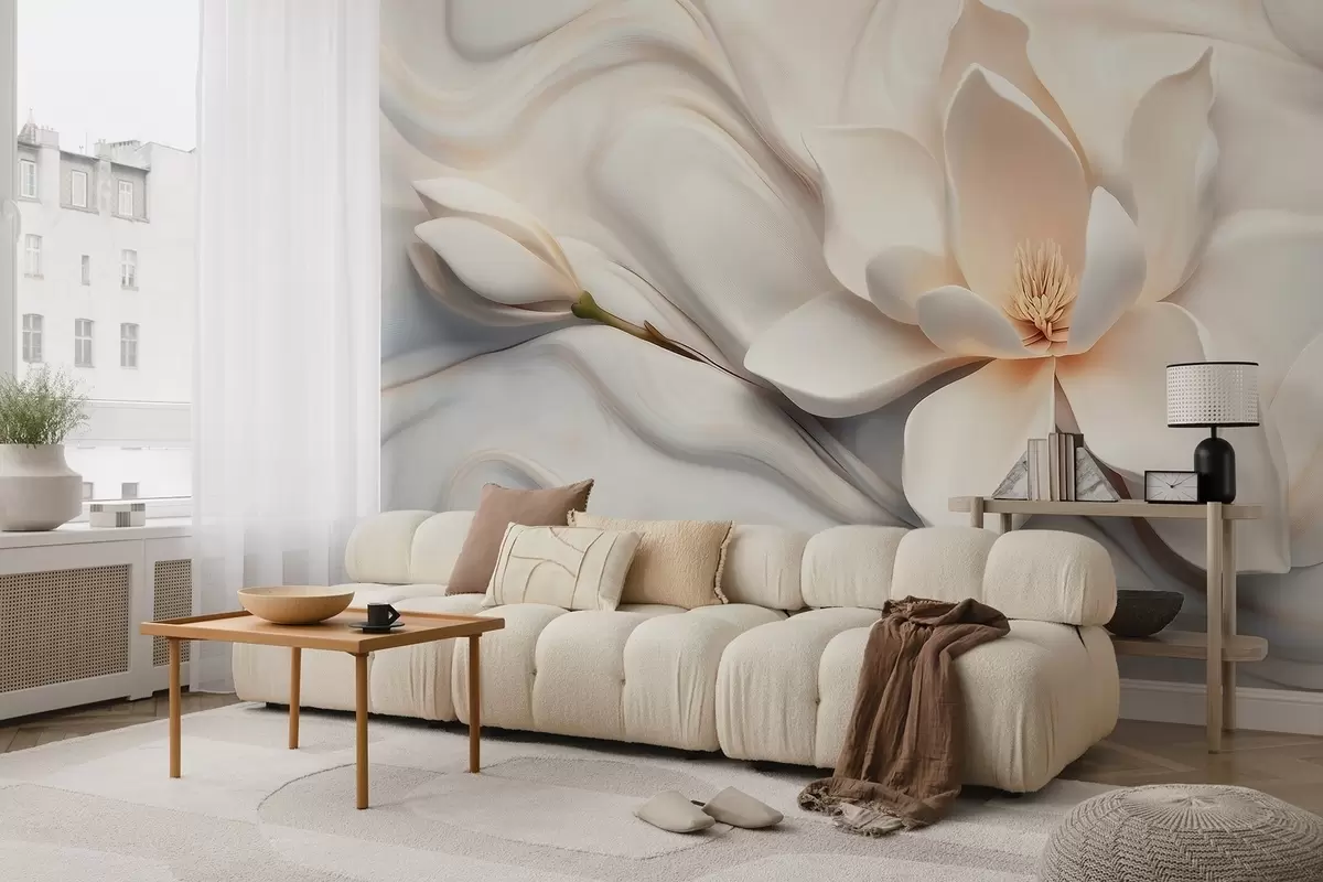 Fototapetak Háromdimenziós fehér magnólia, dombornyomott márvány textúra utánzattal Nr. w09729