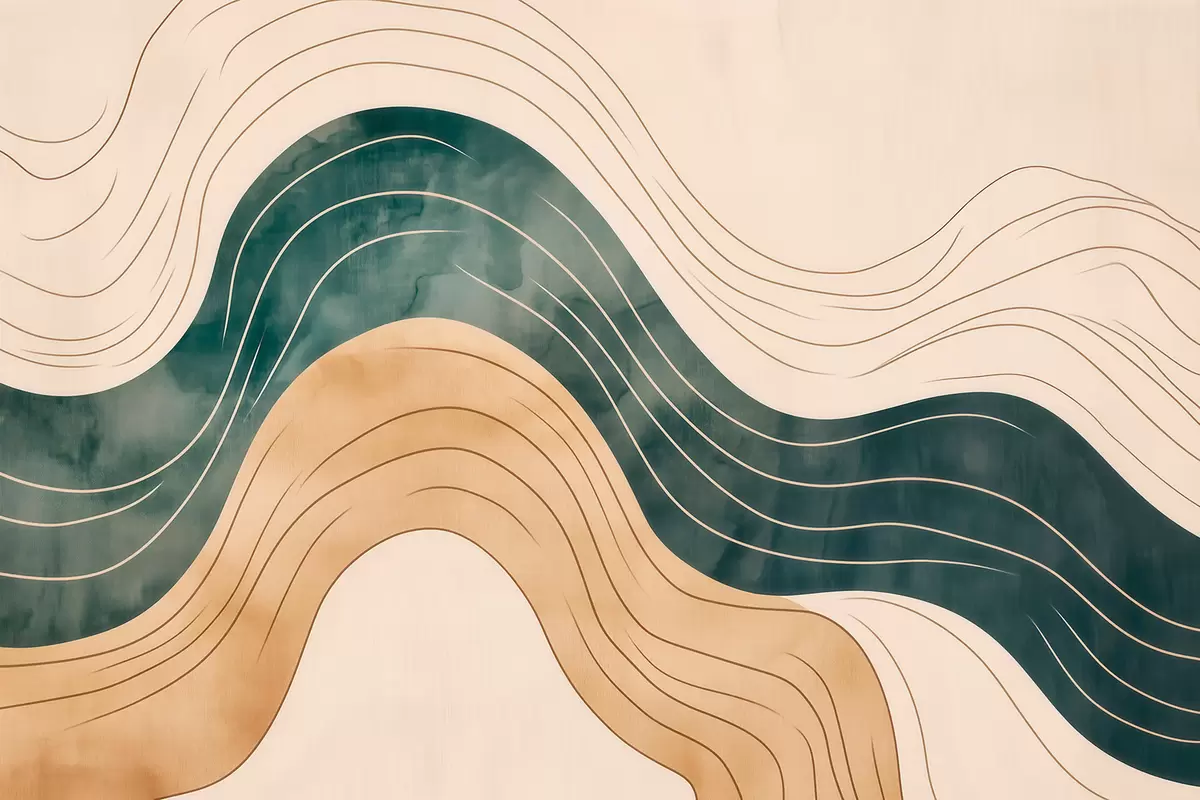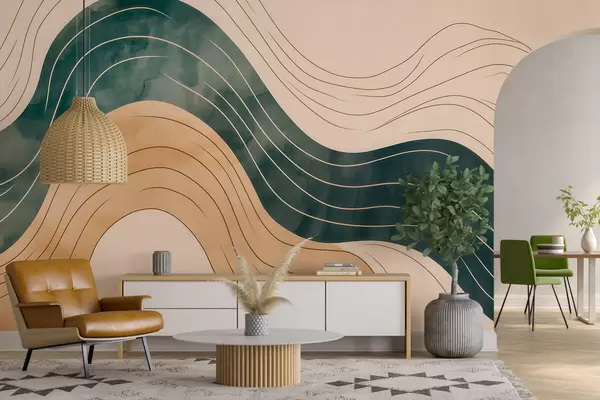 Fototapetak Természetes homok és smaragdszínű árnyalatokból álló, absztrakt hullámvonalak Nr. w09732