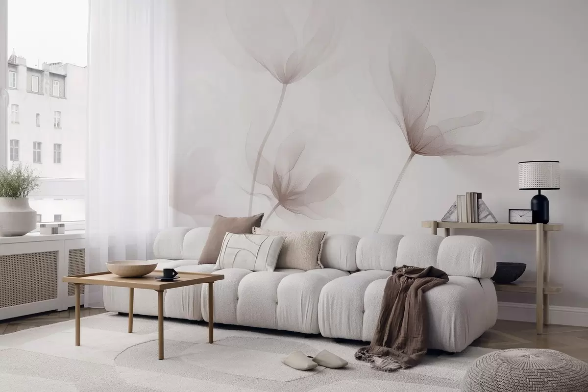 Fototapetak Légies bézs virágok minimalista, könnyed stílusban Nr. w09734