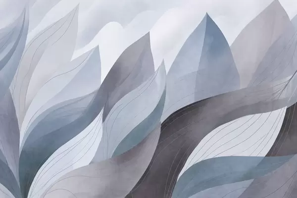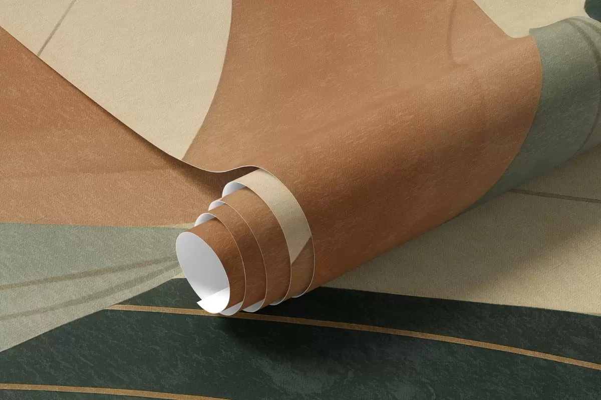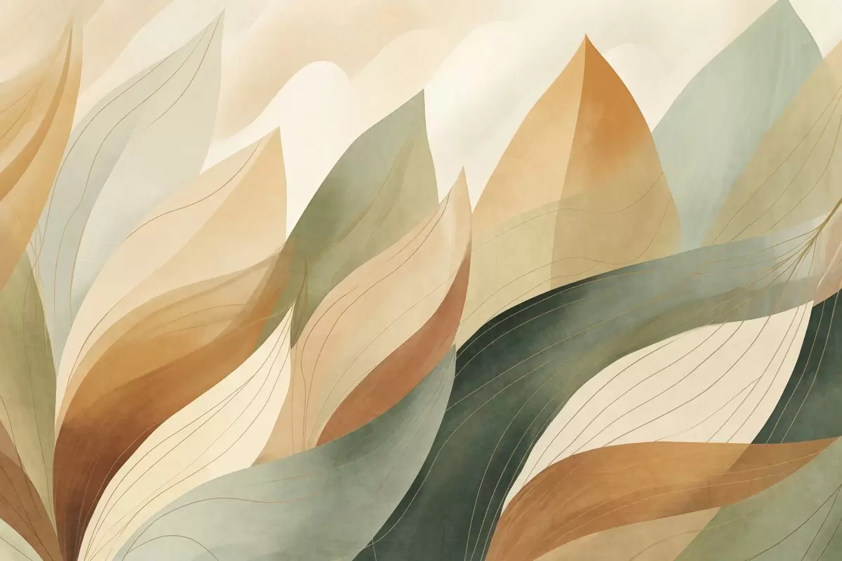 Fototapetak Absztrakt levelek, tompa földszínek: zöld, narancs, finom vonalrajzokkal, lágy akvarell textúra Nr. w09736