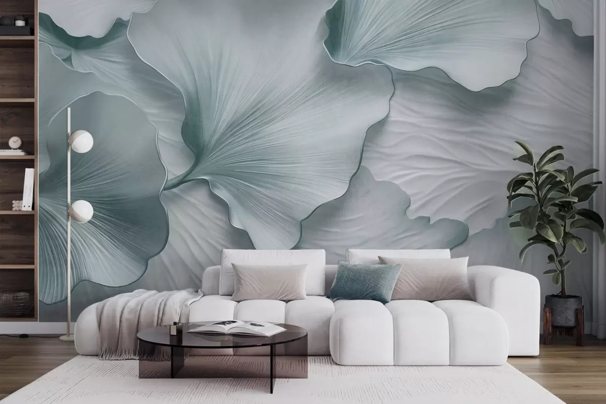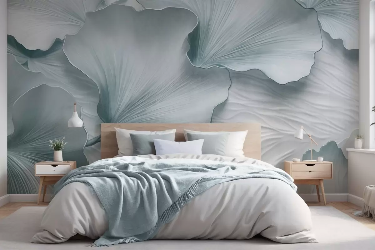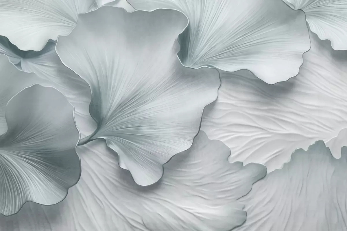 Fototapetak Texturált, kék és fehér ginkgo levelek szirmok finom organikus nyomtatással Nr. w09741v1