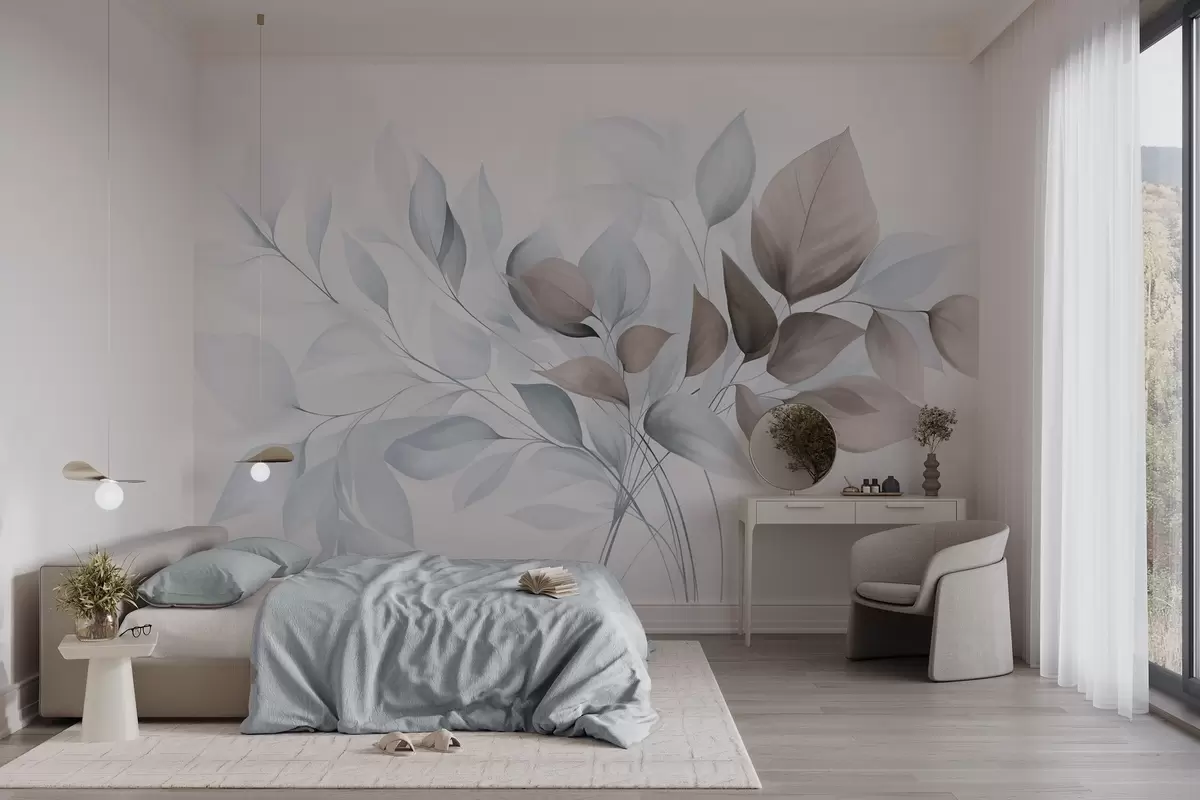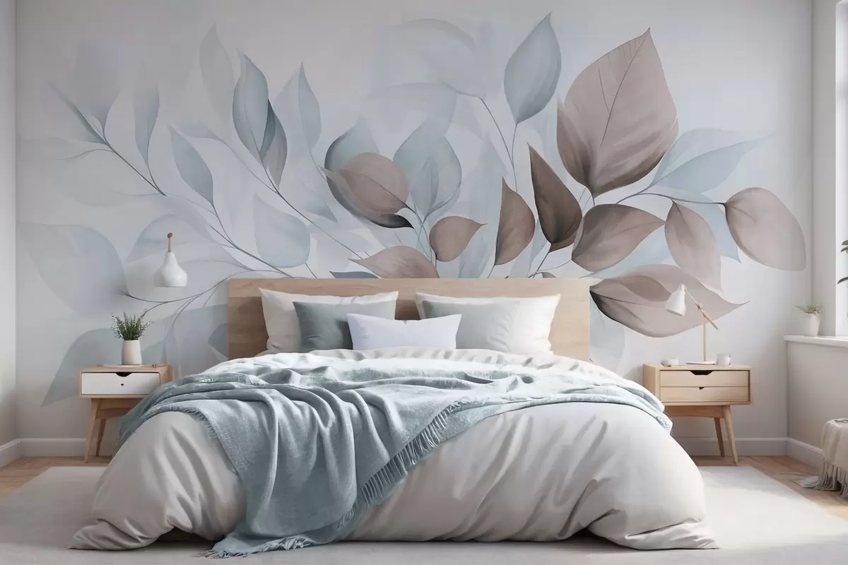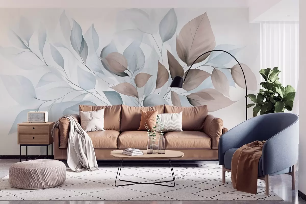 Fototapetak Absztrakt, áttetsző levelek kék, bézs és barna árnyalatokban, texturált művészet Nr. w09744v1