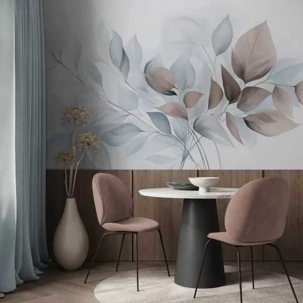 Fototapetak Absztrakt, áttetsző levelek kék, bézs és barna árnyalatokban, texturált művészet Nr. w09744v1