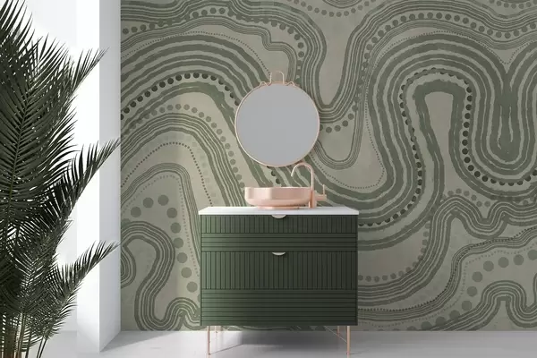 Fototapetak Absztrakt zöld és bézs hullámvonalak és pontok, modern texturált művészet Nr. w09747