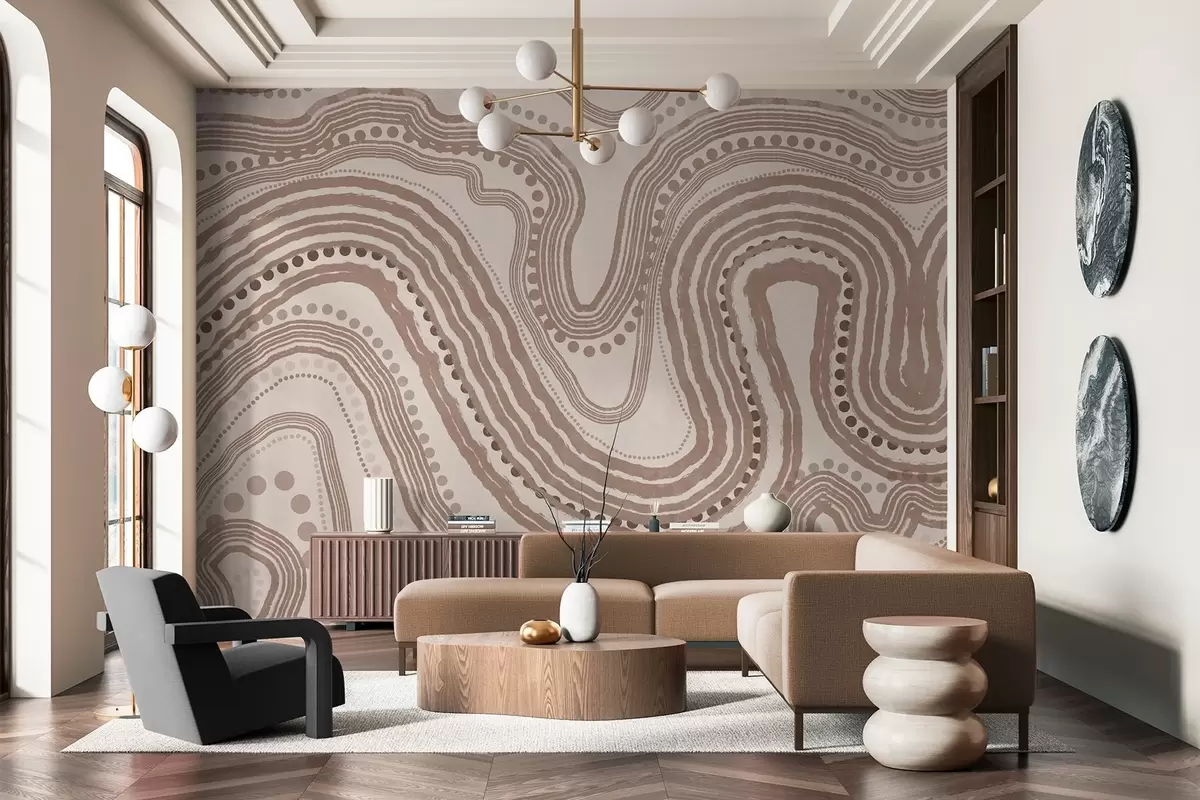 Fototapetak Absztrakt barna és bézs hullámvonalak és pontok, modern texturált művészet Nr. w09747v1