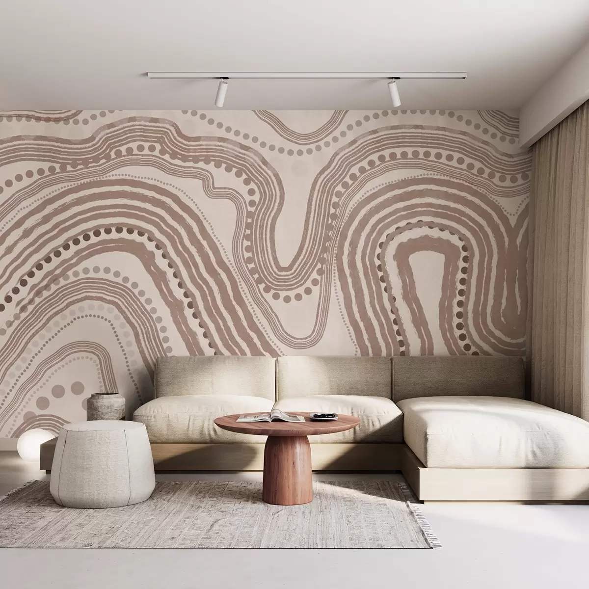 Fototapetak Absztrakt barna és bézs hullámvonalak és pontok, modern texturált művészet Nr. w09747v1