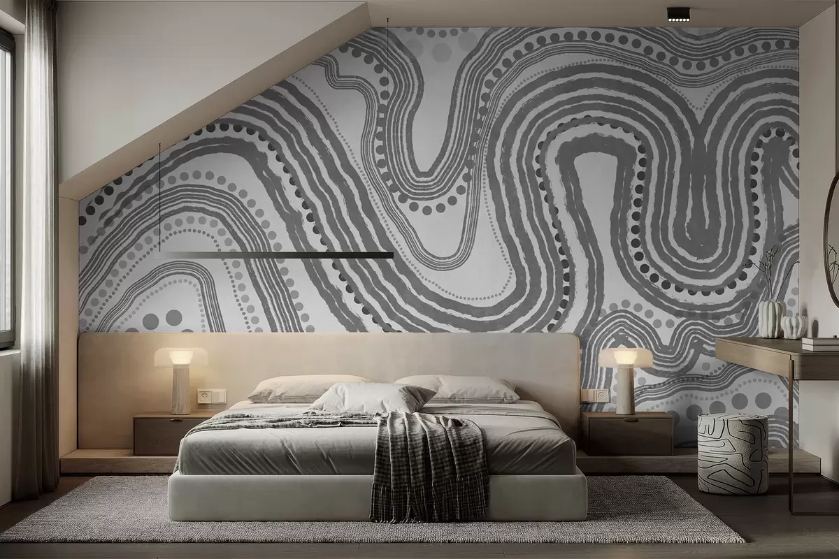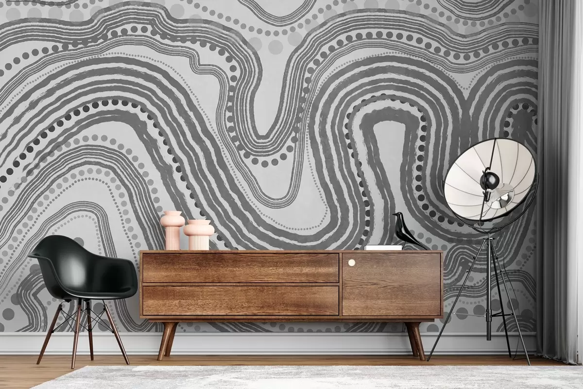 Fototapetak Absztrakt sötét szürke hullámvonalak és pontok, modern texturált művészet Nr. w09747v2