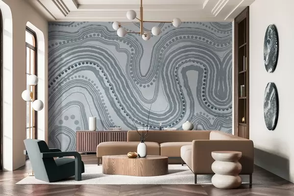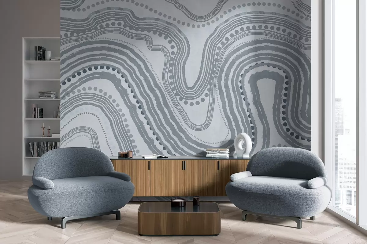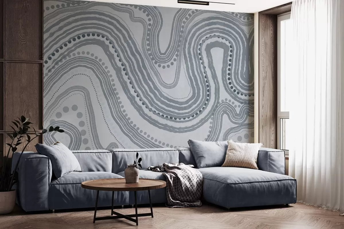 Fototapetak Absztrakt kék hullámvonalak és pontok, modern texturált művészet Nr. w09747v3