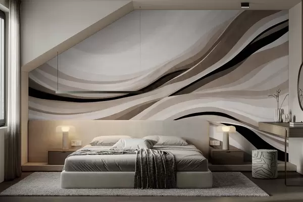 Fototapetak Absztrakt hullámvonalak bézs és fekete árnyalatokban világos háttér előtt, texturált művészet Nr. w09748