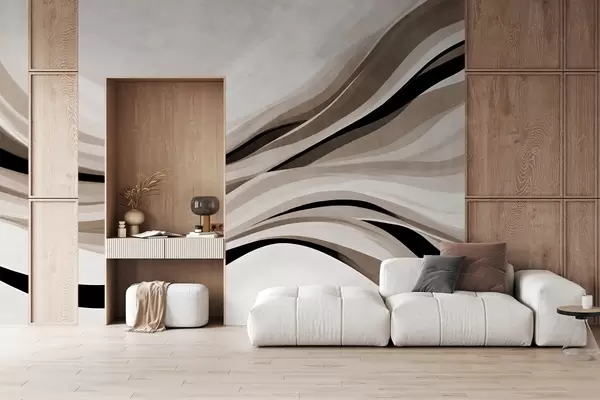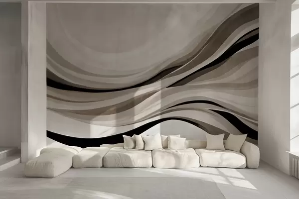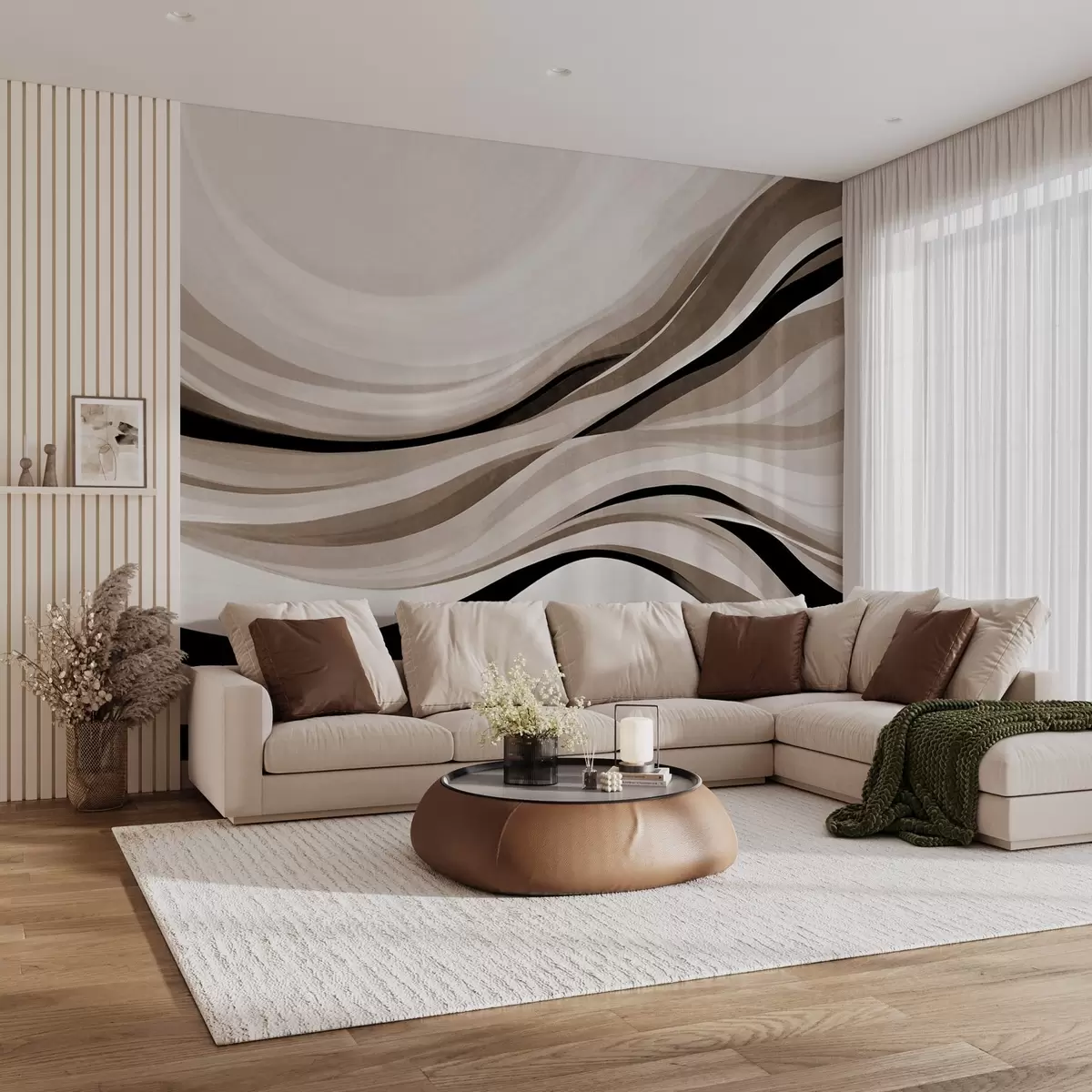 Fototapetak Absztrakt hullámvonalak bézs és fekete árnyalatokban világos háttér előtt, texturált művészet Nr. w09748