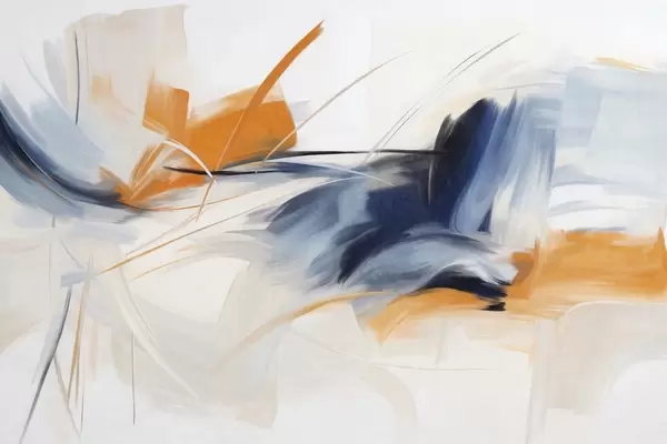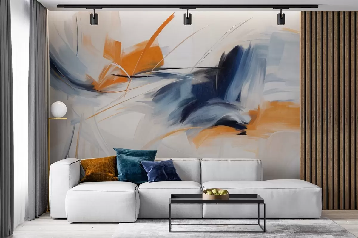 Fototapetak Absztrakt festészeti stílus narancssárga és kék texturált ecsetvonásokkal Nr. w09755