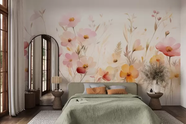 Fototapetak Pasztell árnyalatú vadvirágok absztrakt mezője, akvarell festészeti stílusban Nr. w09757