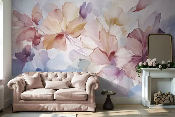 Fototapetak Absztrakt, fantáziadús virágok rózsaszín, barack és levendula árnyalatokban, festői stílusban, texturált alkotás Nr. w09767
