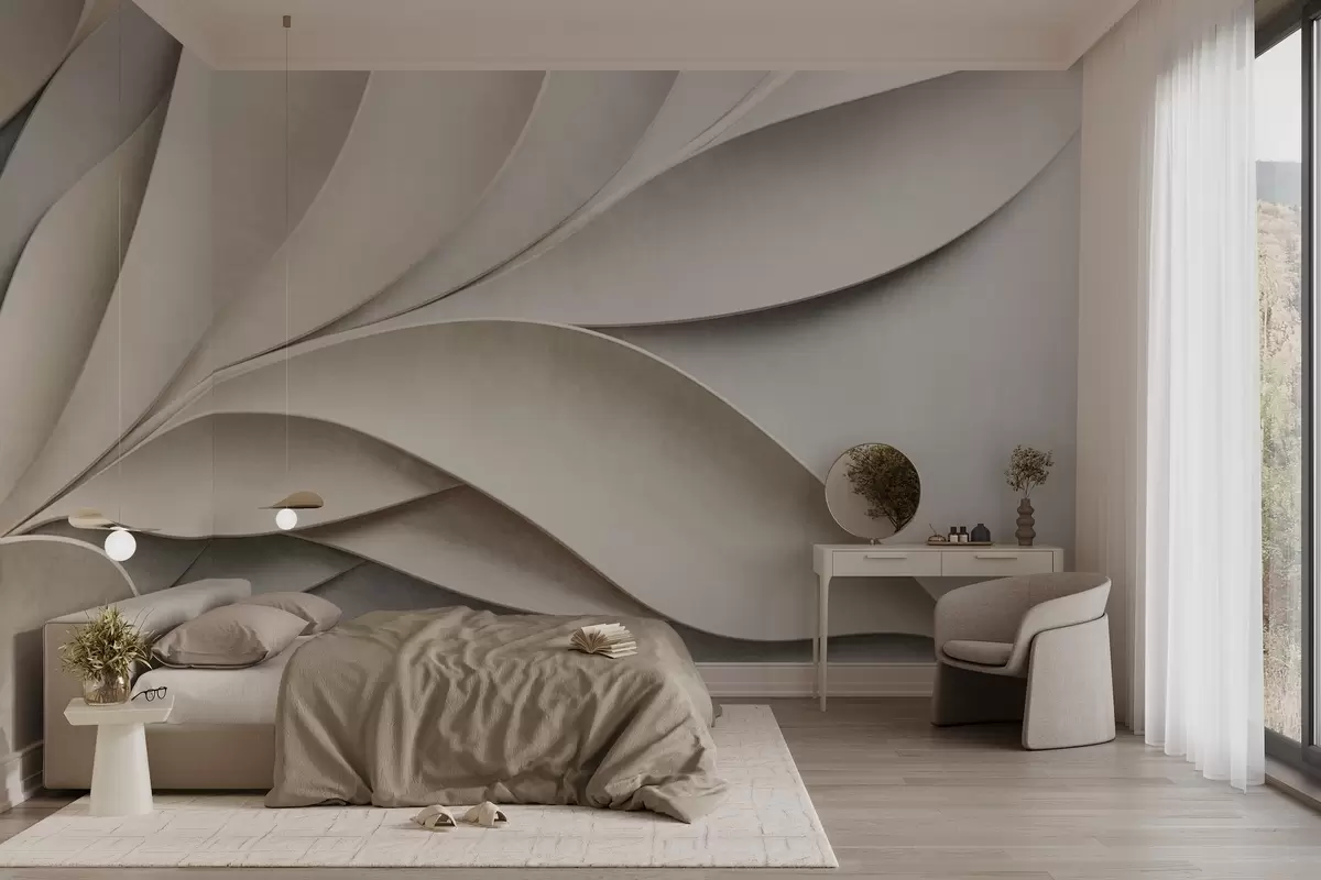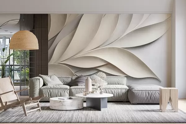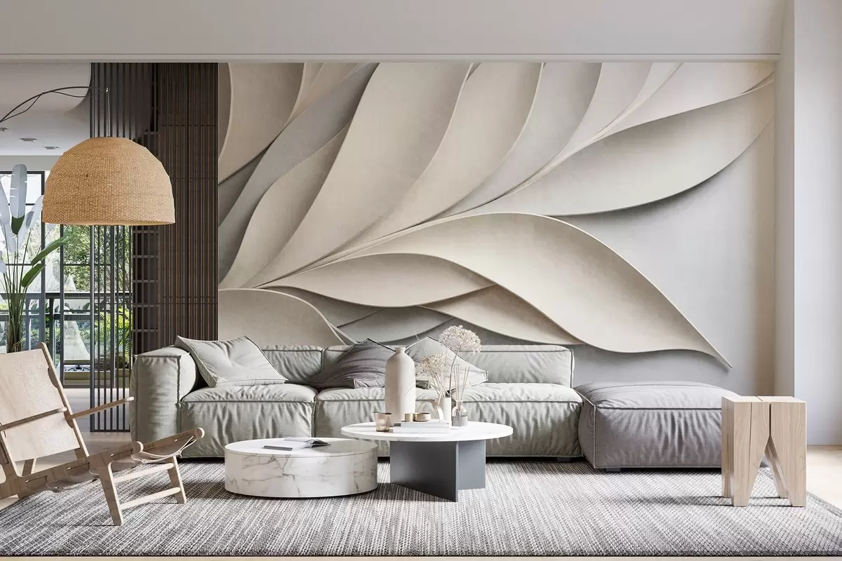 Fototapetak Absztrakt levelek bézs és szürke színben, texturált modern művészet Nr. w09769