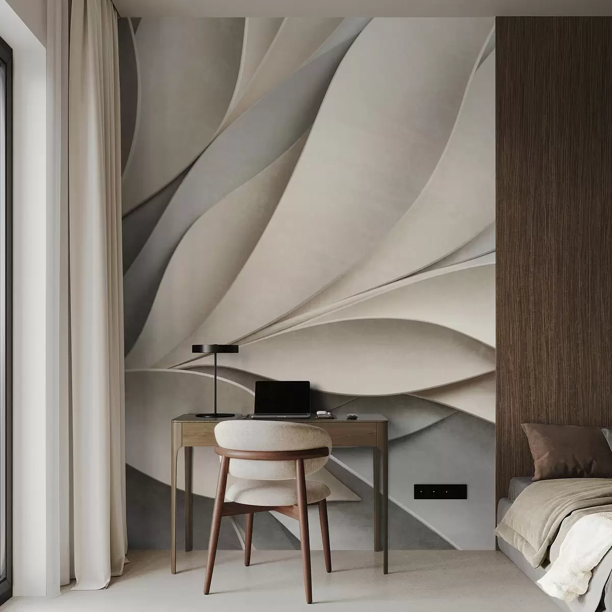 Fototapetak Absztrakt levelek bézs és szürke színben, texturált modern művészet Nr. w09769