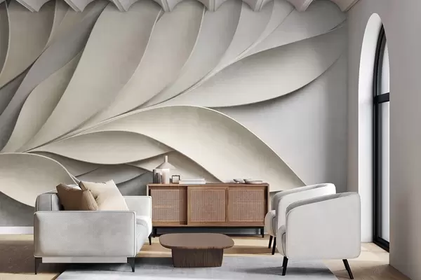 Fototapetak Absztrakt levelek bézs és szürke színben, texturált modern művészet Nr. w09769
