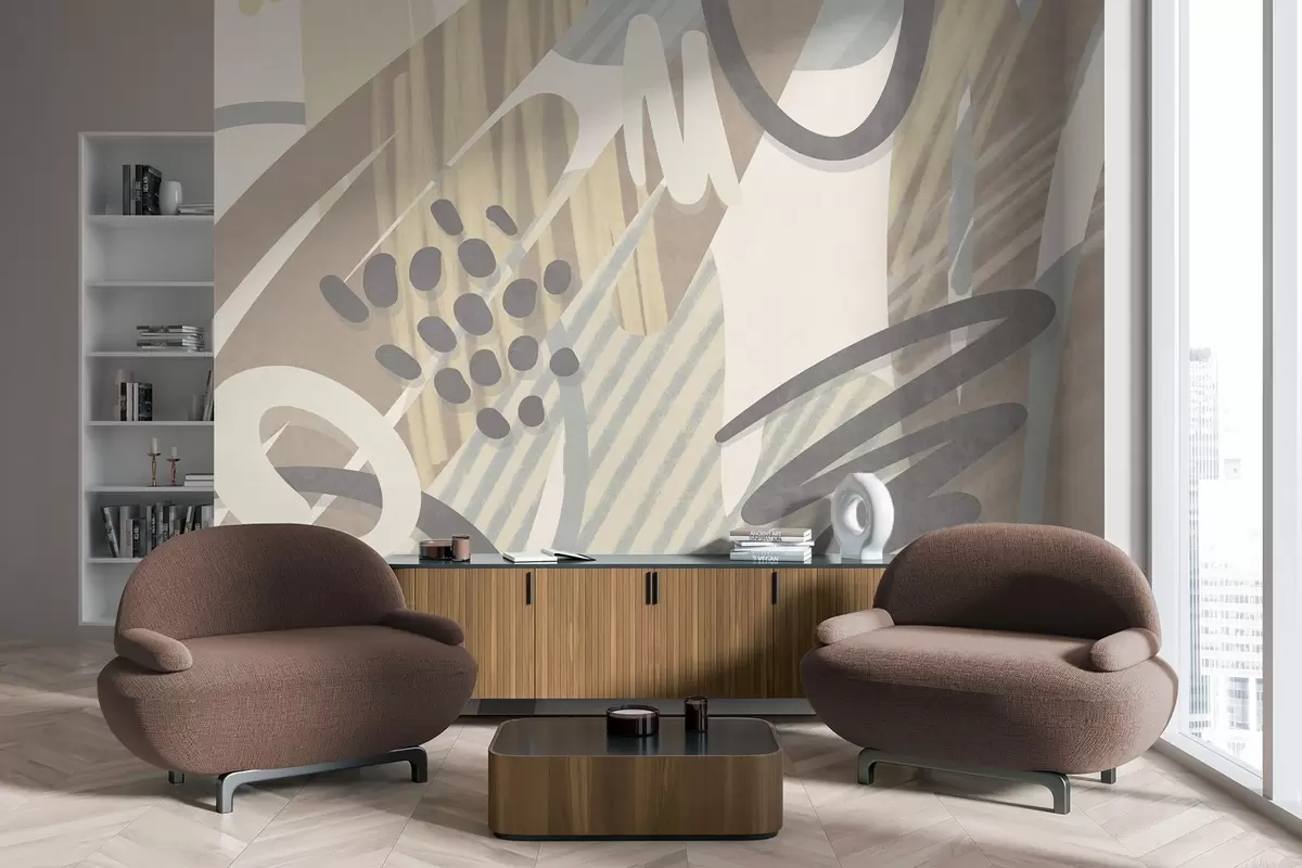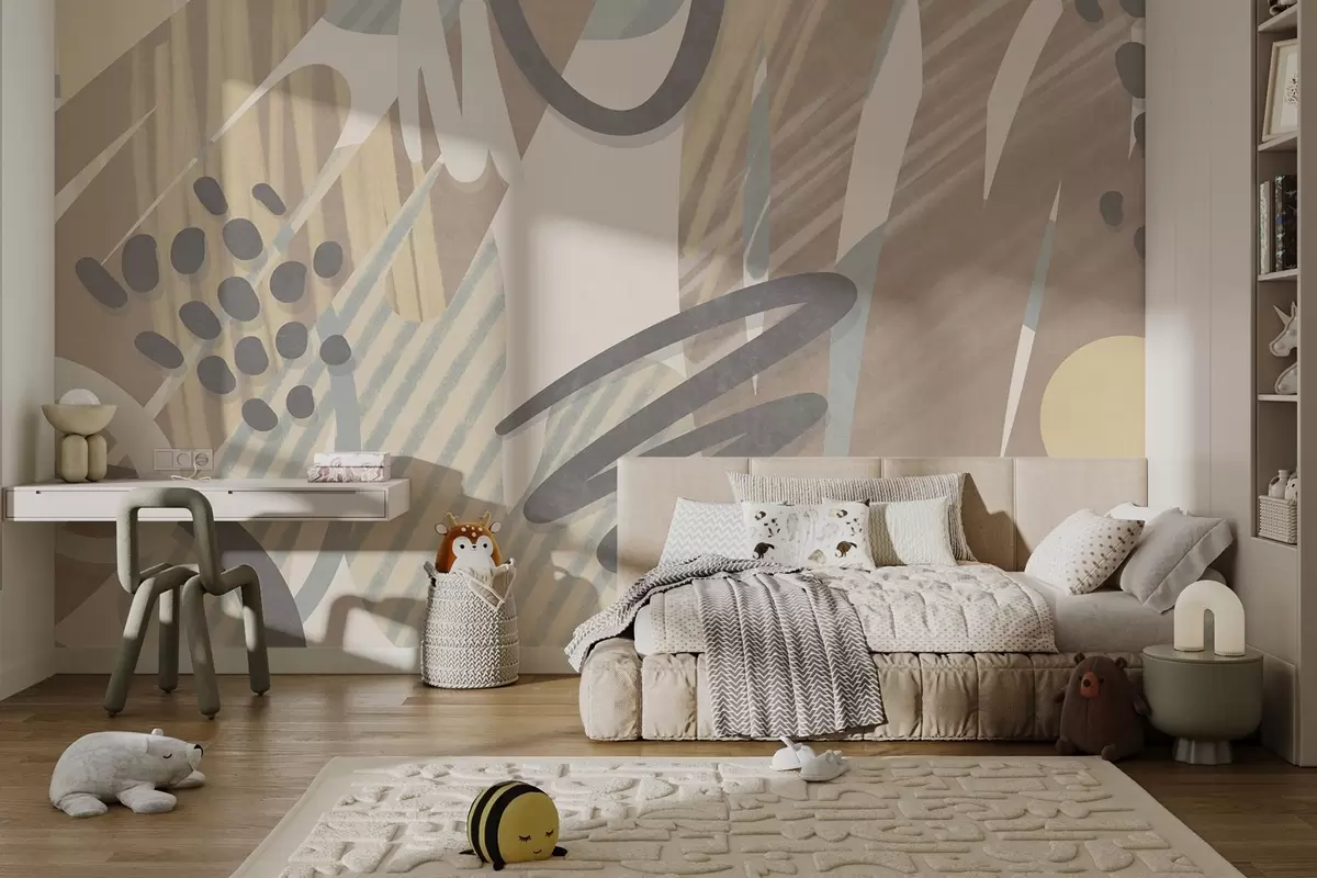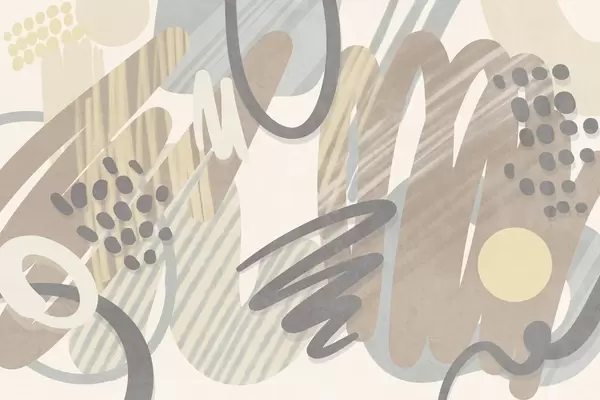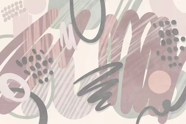 Fototapetak Absztrakt, texturált nyomtatás organikus formákkal, firkákkal és pontokkal, tompított pasztell színekben Nr. w09774