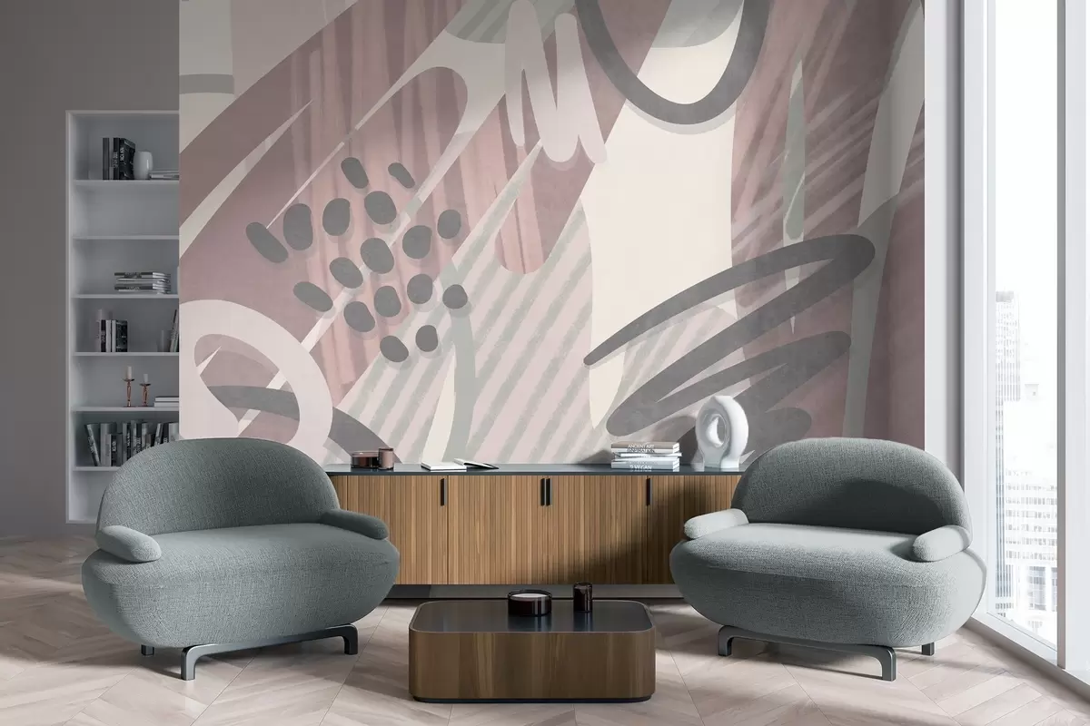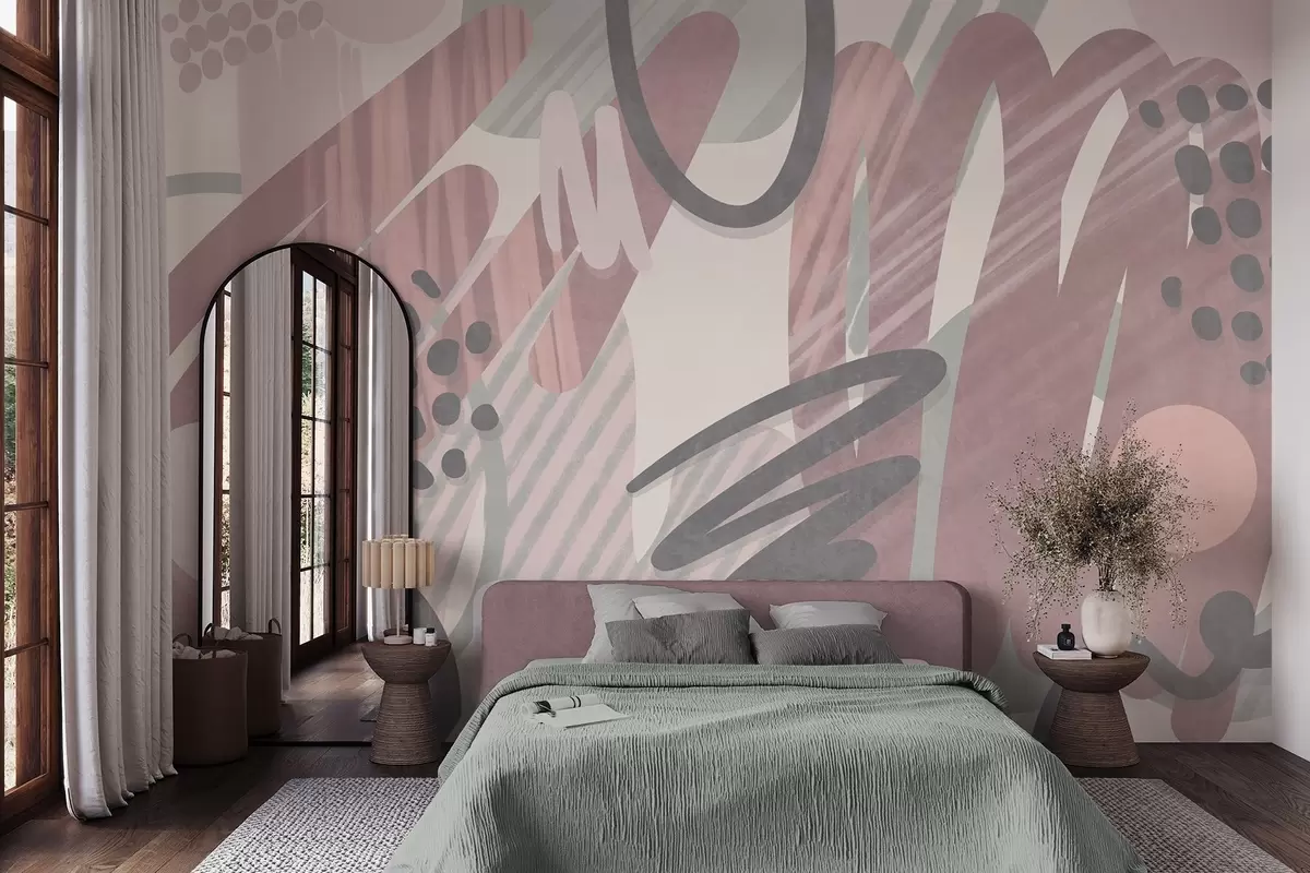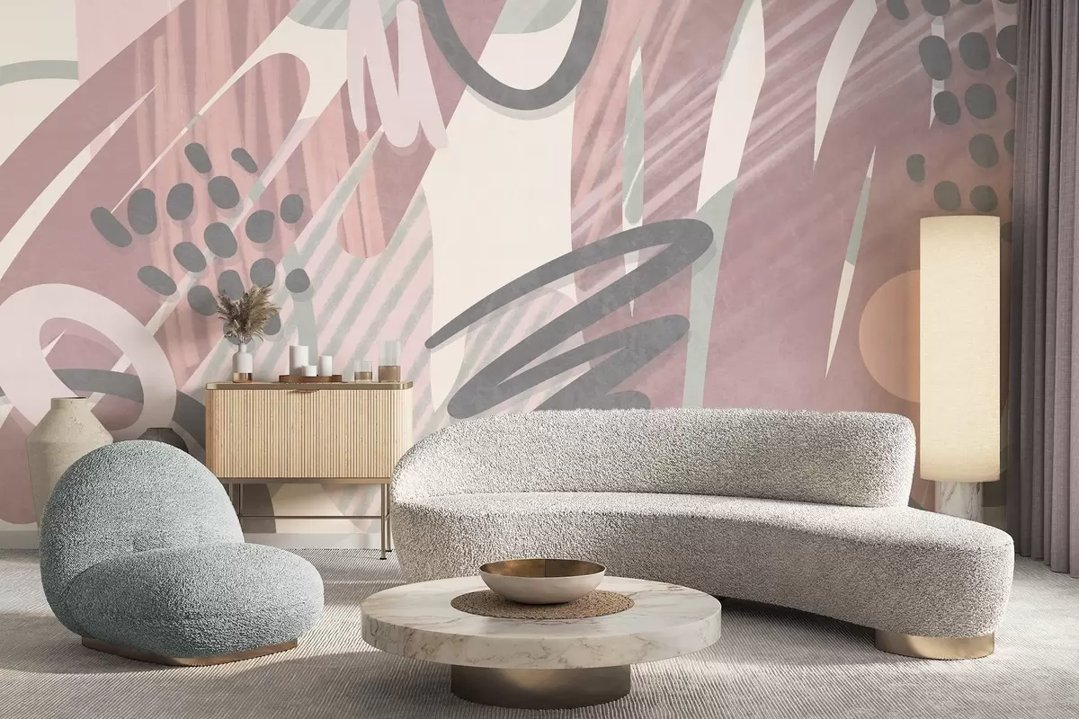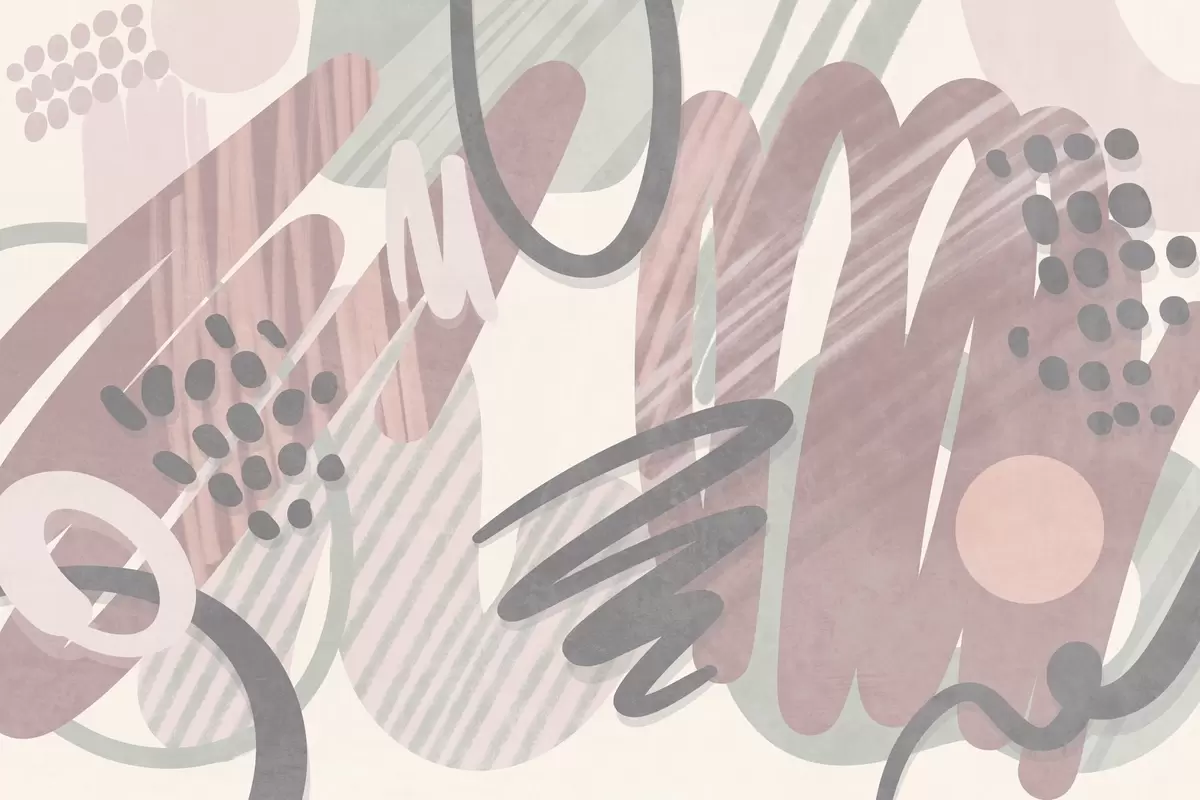 Fototapetak Absztrakt, texturált nyomtatás organikus formákkal, firkákkal és pontokkal, tompított pasztell színekben Nr. w09774v1